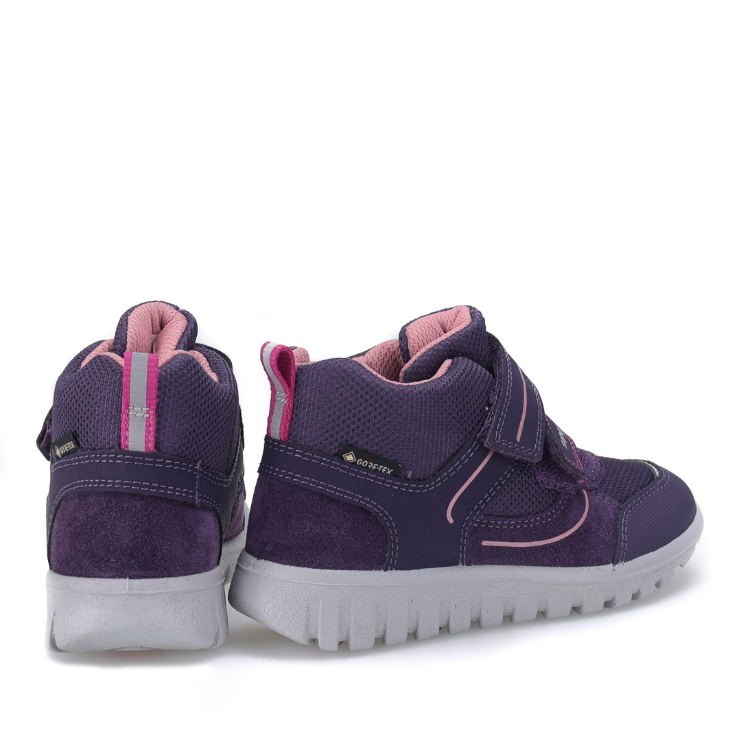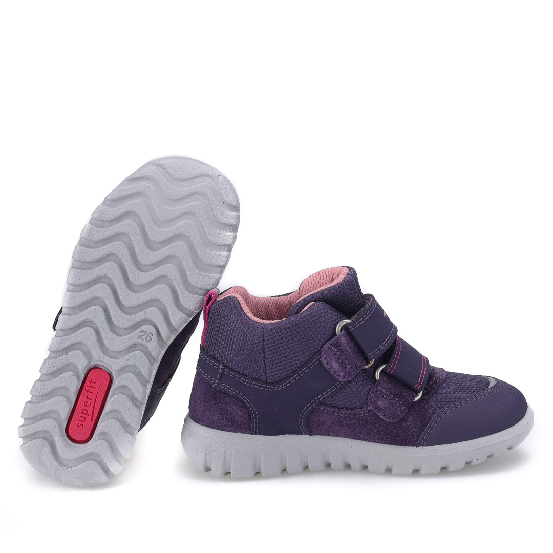 Model w sportowym stylu z fioletowo - różowymi akcentami, wyróżnia się nowoczesnym designem i funkcjonalnością – idealny dla aktywnych dzieci.