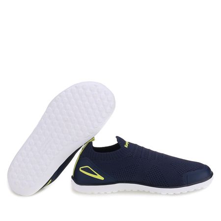 Stylowe i ultralekkie buty sportowe typu slip-on, idealne dla osób ceniących wygodę i nowoczesny design. Wykonane z przewiewnej, elastycznej dzianiny, doskonale dopasowują się do stopy, zapewniając komfort przez cały dzień. Brak sznurówek ułatwia szybkie zakładanie i zdejmowanie, a elastyczny kołnierz stabilnie utrzymuje stopę na miejscu. Granatowa kolorystyka została uzupełniona neonowymi, limonkowymi akcentami, które dodają butom dynamicznego charakteru. Lekka, amortyzująca podeszwa gwarantuje wygodę podczas chodzenia, a antypoślizgowy bieżnik zwiększa przyczepność na różnych nawierzchniach. To doskonały wybór na co dzień, do spacerów, podróży czy aktywnego stylu życia – łączą w sobie funkcjonalność, komfort i sportową elegancję.