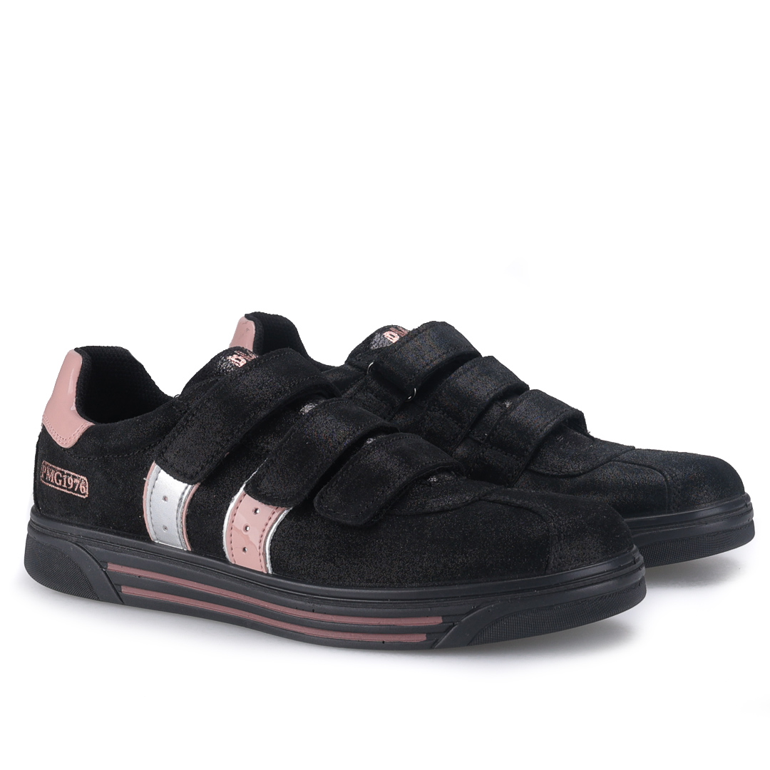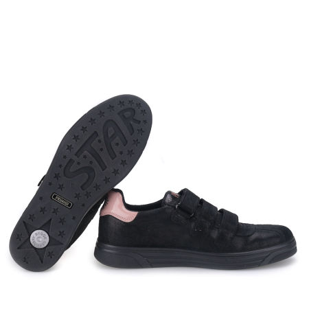 Połączenie wygody i wyjątkowego stylu. Trampki firmy PRIMIGI typu sneakers w kolorze czarnym z metalicznymi dodatkami wyprodukowano z myślą o dziewczynkach, które lubią oryginalny styl.
