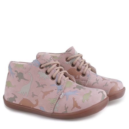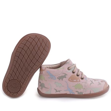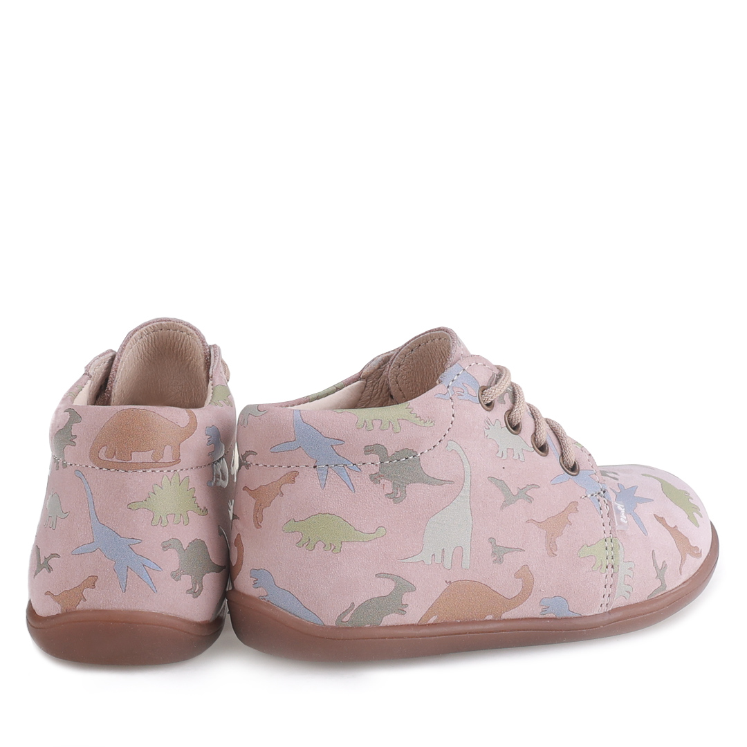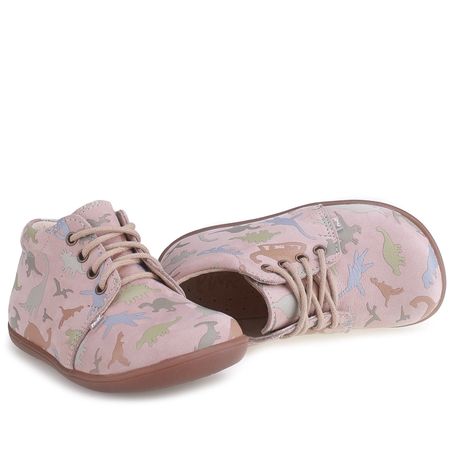 Beżowe trzewiki dziecięce Arno Barefoot w dinozaury