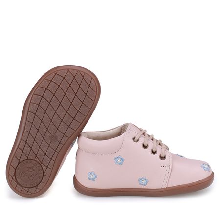 Beżowe trzewiki dziecięce Arno Barefoot w kwiatuszki