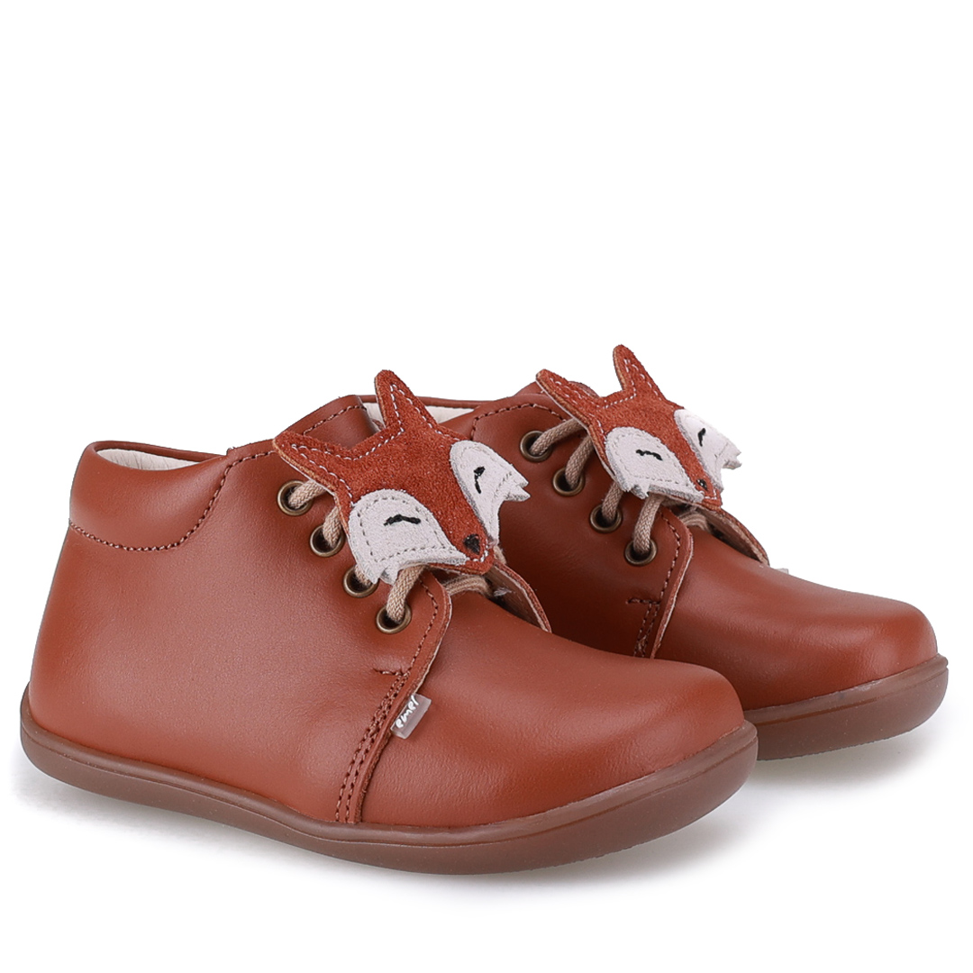 Brązowe trzewiki dziecięce Arno Barefoot z liskiem