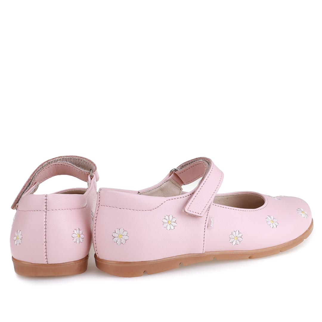 Vienna różowe baleriny dziecięce ze skóry naturalnej w kwiatuszki