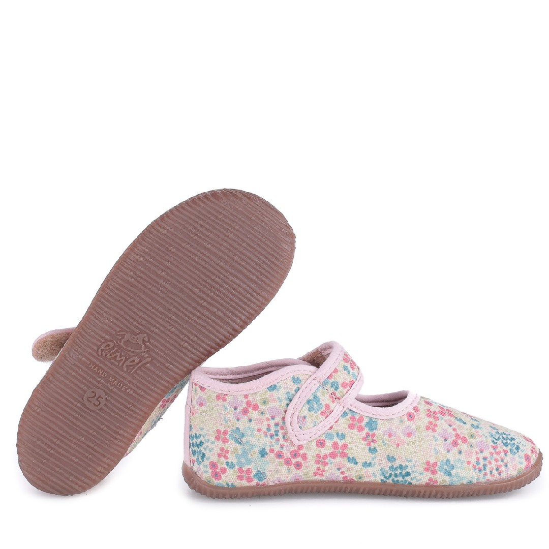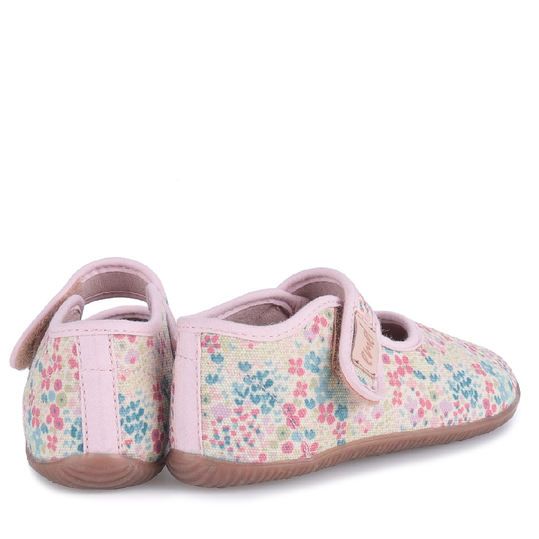 Kolorowe kapcie Emel w pastelowe kwiatuszki z różową lamówką mają delikatny, dziewczęcy wzór i lekki krój inspirowany balerinami. Kapcie są miękkie, elastyczne i super lekkie, zapewniając komfort i swobodę ruchu podczas zabawy.