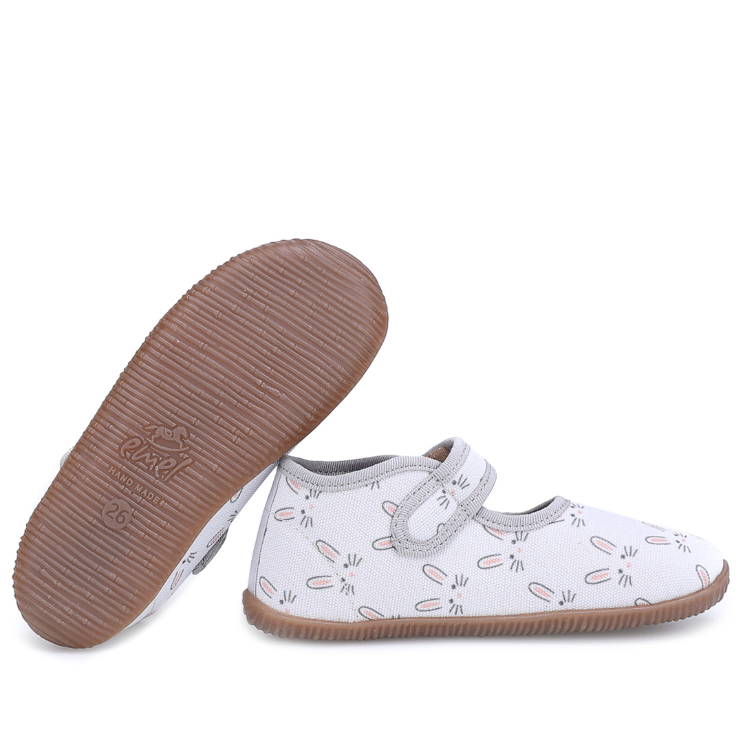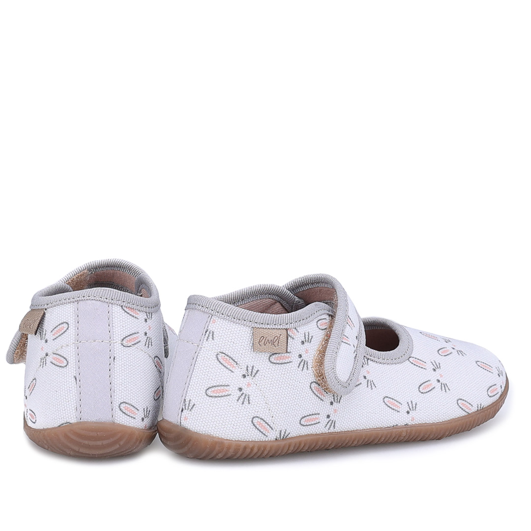 Szare kapcie Emel w króliczki wyróżniają się subtelnym, urokliwym wzorem i lekkim, przewiewnym krojem baleriny. Kapcie są miękkie, elastyczne i niezwykle lekkie, co zapewnia dzieciom komfort i swobodę ruchu przez cały dzień.