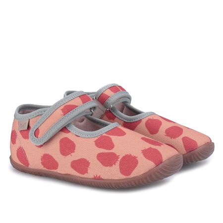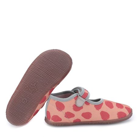 Pomarańczowe kapcie Barefoot dla dzieci w truskawki