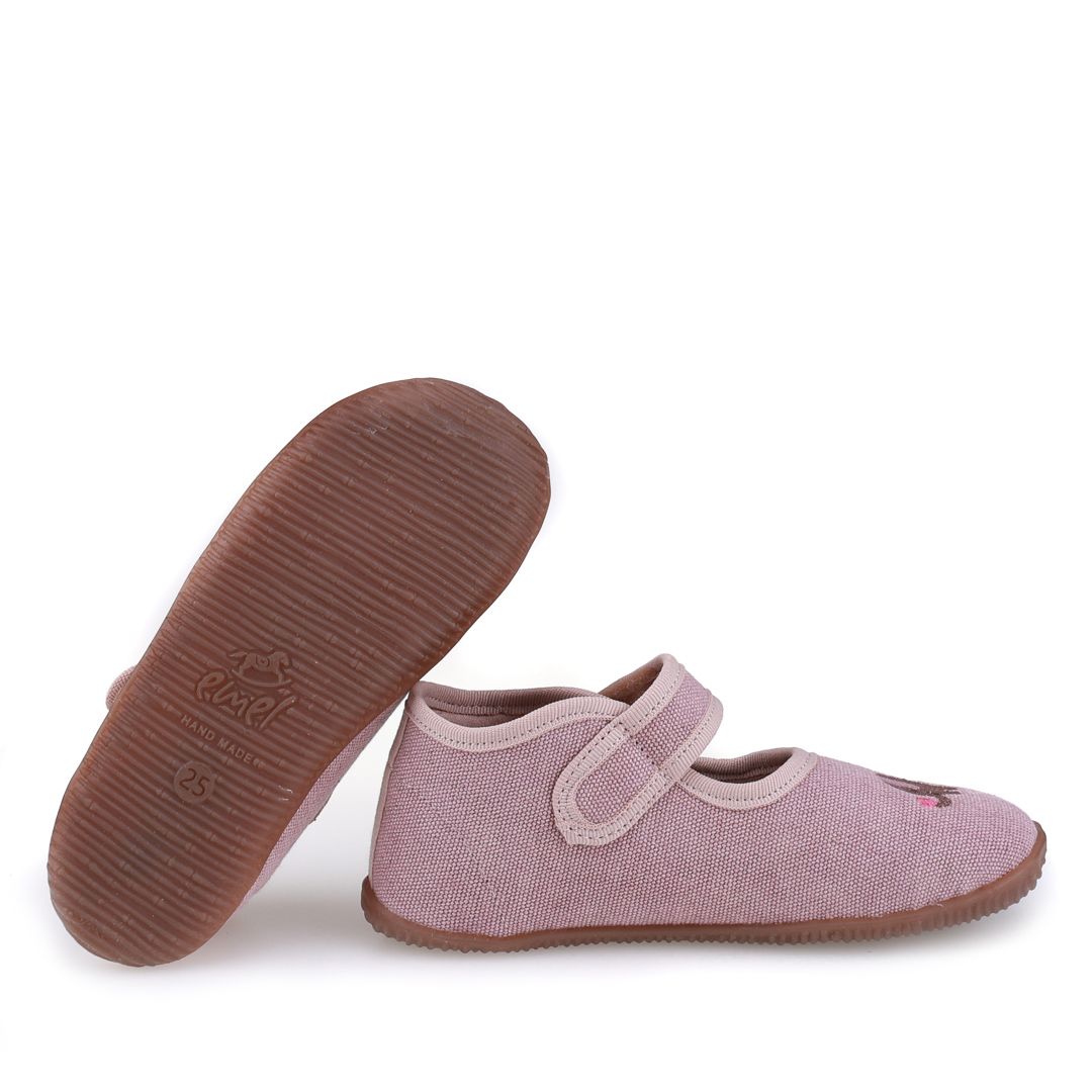 Różowe kapcie Emel z haftem słonika mają subtelny, dziecięcy akcent i balerinowy krój, który zapewnia lekkość oraz przewiewność. Kapcie są miękkie, elastyczne i super lekkie, gwarantując swobodę ruchu podczas zabawy.
