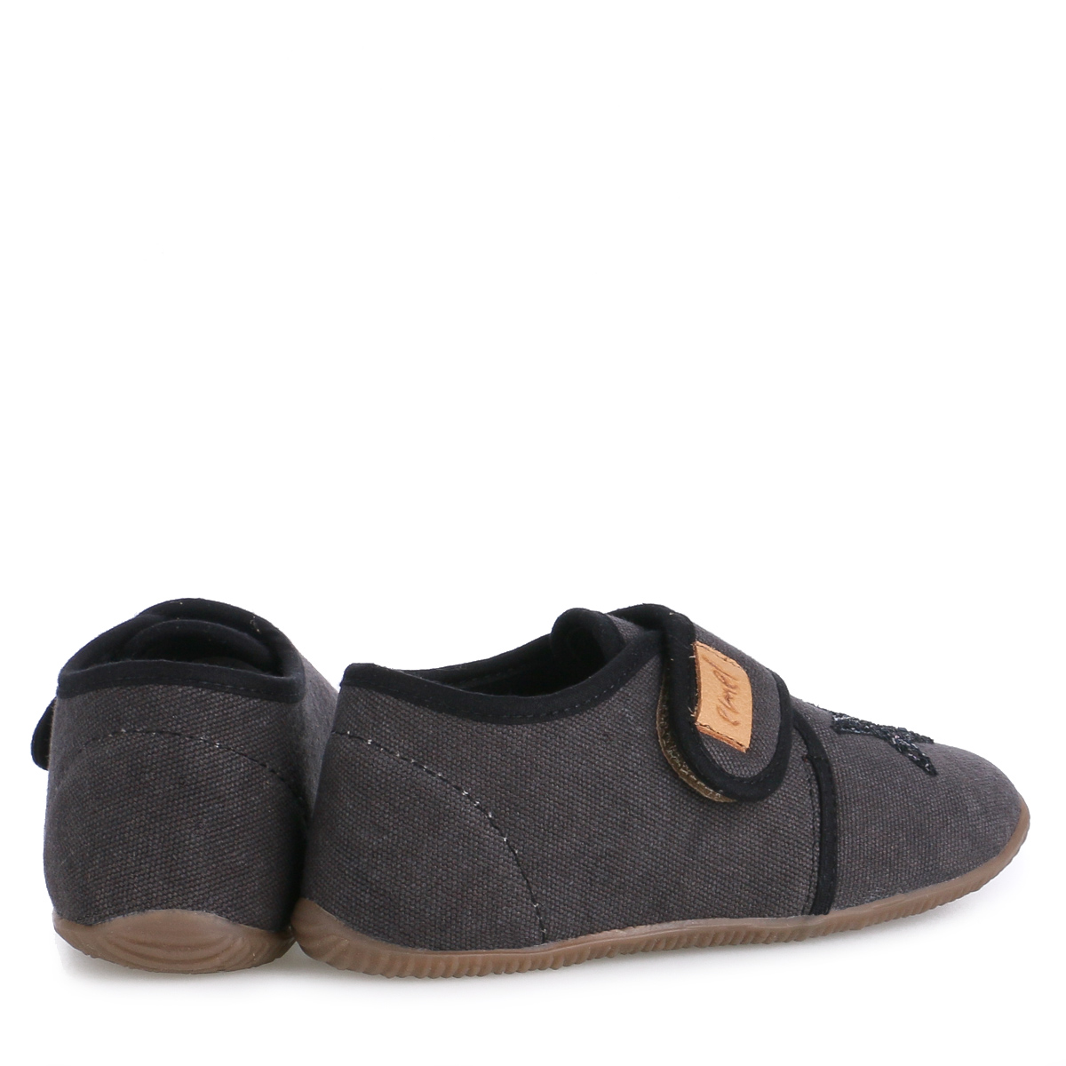 Czarne kapcie Emel z czarną brokatową gwiazdą mają stylowy, elegancki akcent, który przyciąga wzrok. Kapcie są mięciutkie, elastyczne i super lekkie, zapewniając swobodę ruchu podczas zabawy.