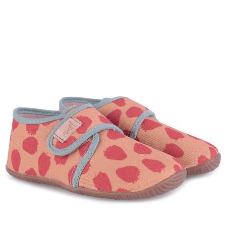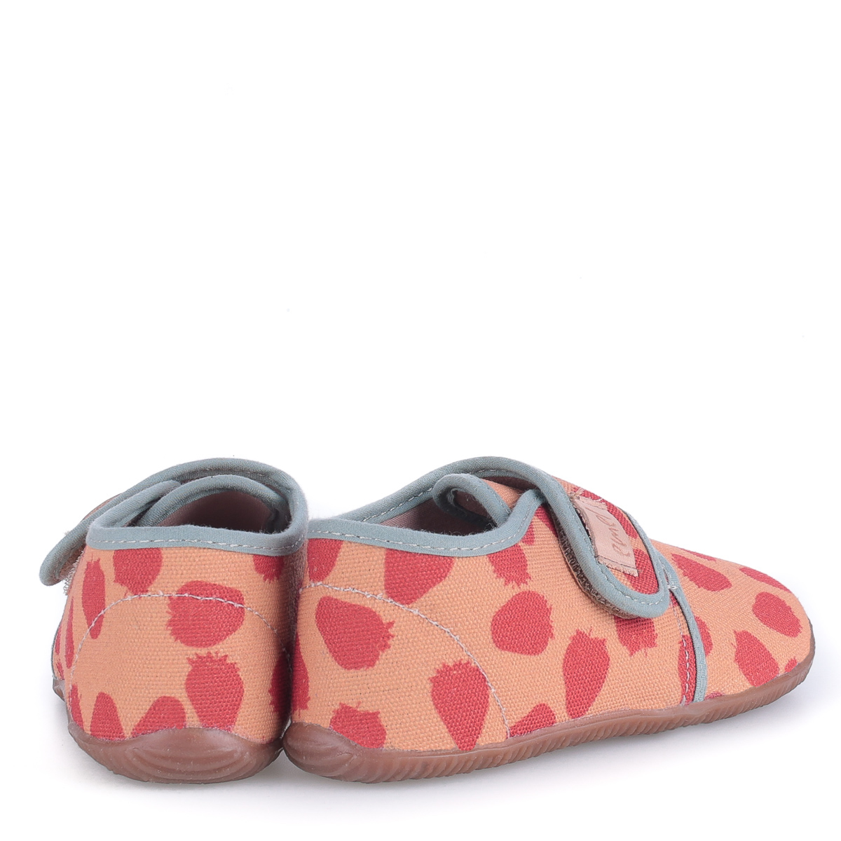 Pomarańczowe kapcie Barefoot dla dzieci w truskawki
