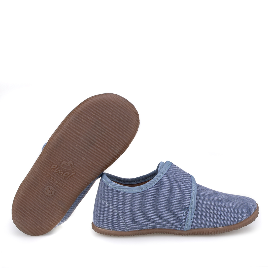 Niebieskie gładkie kapcie Emel mają klasyczny wygląd i miękką, elastyczną strukturę materiału. Kapcie są mięciutkie, super lekkie i zapewniają swobodę ruchu podczas zabawy.