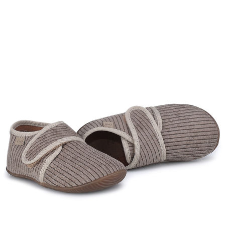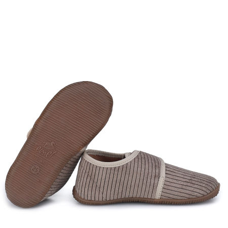 Szare sztruksowe kapcie Emel łączą neutralny kolor z przytulną, miękką strukturą materiału. Kapcie są mięciutkie, elastyczne i super lekkie, dzięki czemu umożliwiają swobodną zabawę i nie ograniczają ruchów naszych pociech.