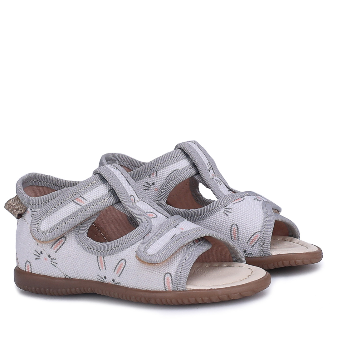 Szare kapcie dziecięce Emel – sandałki z króliczkami