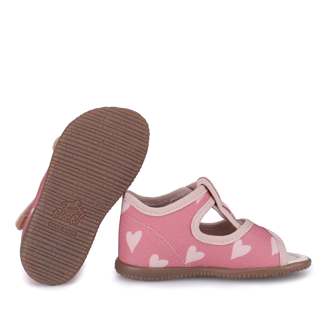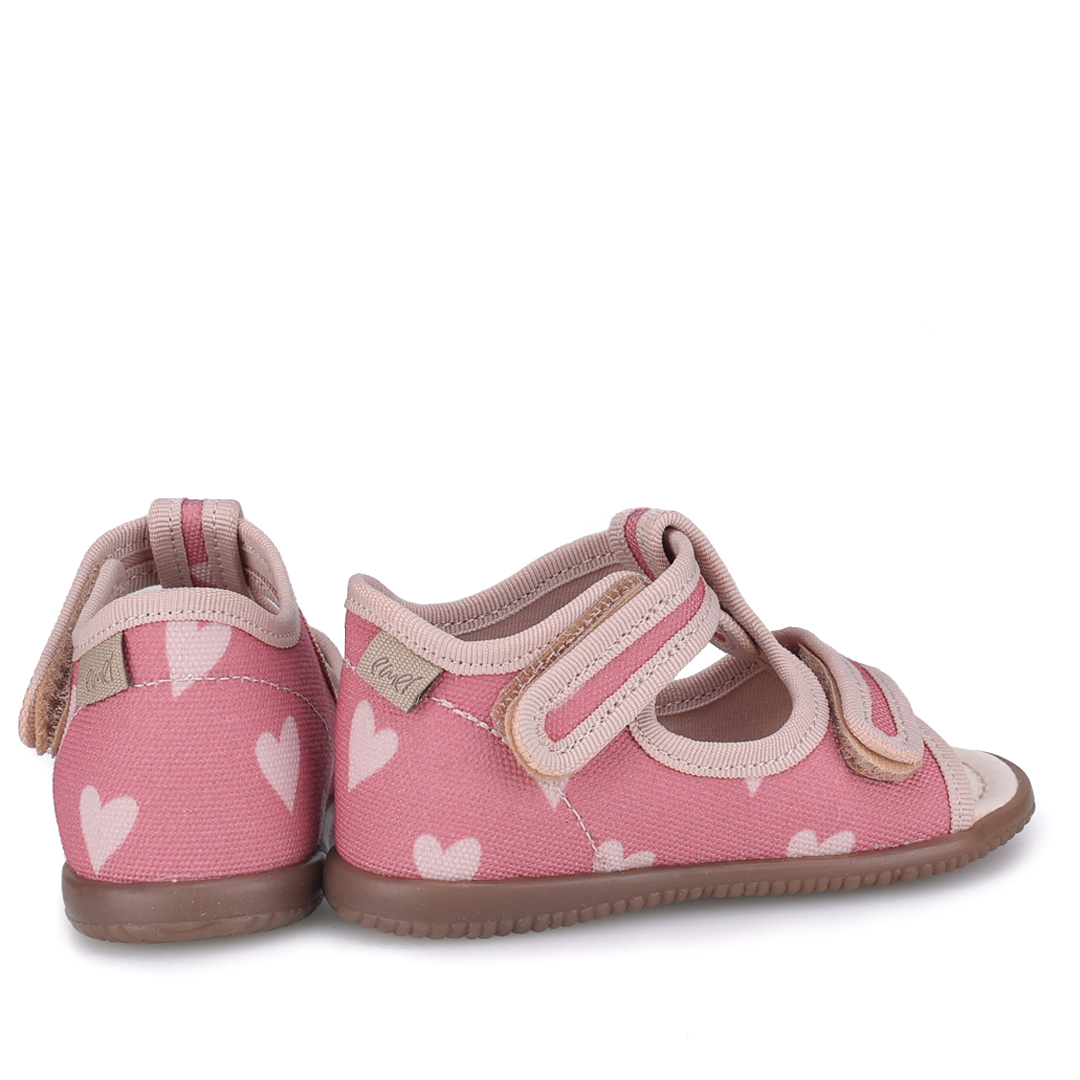 Różowe kapcie dziecięce Emel – sandałki w serduszka