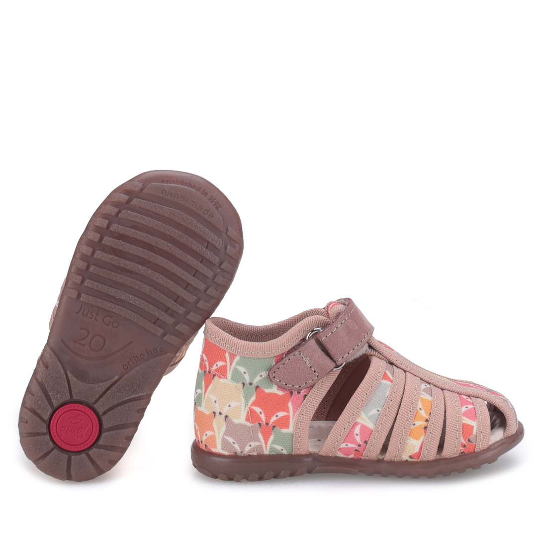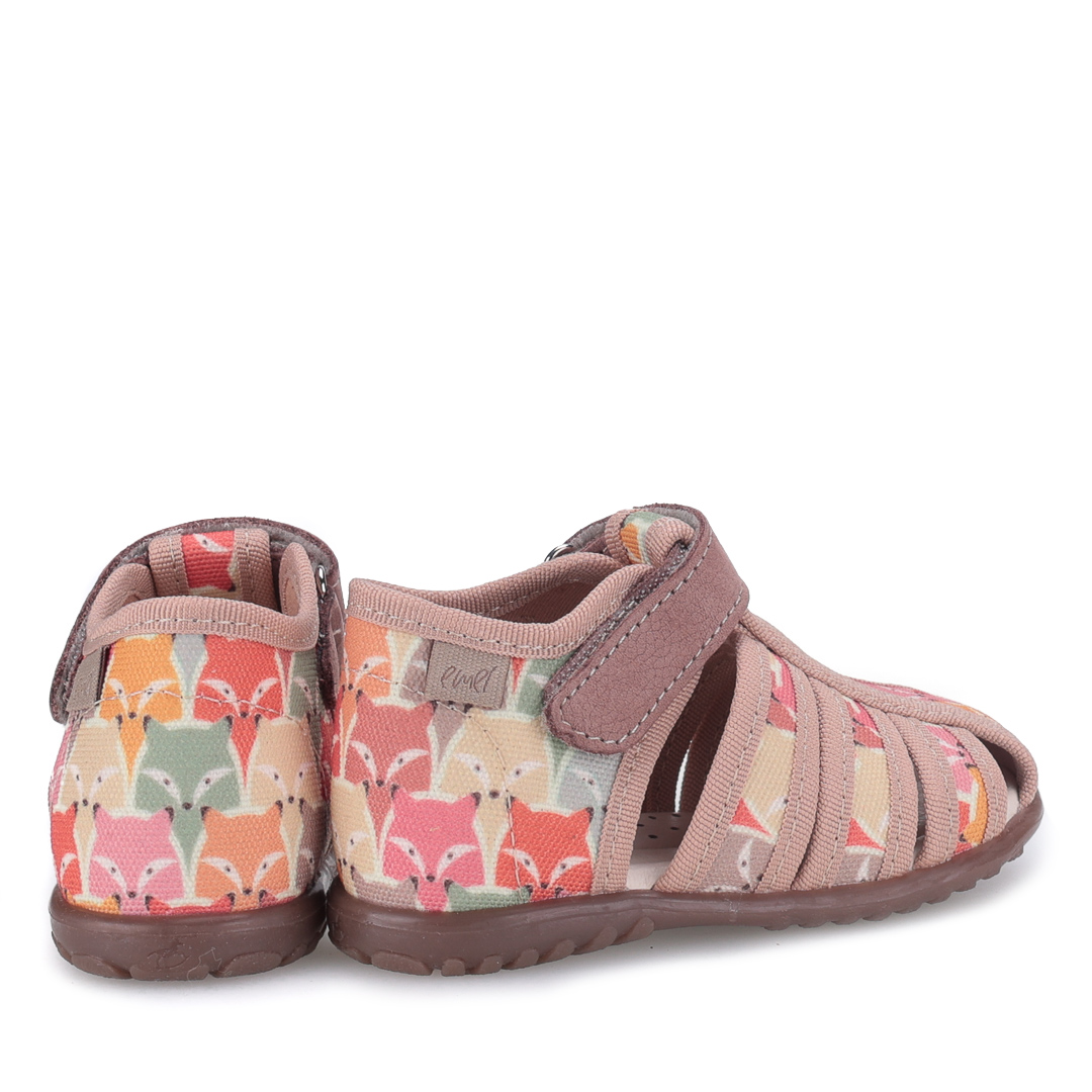 Beżowe kapcie dziecięce Emel w kolorowe liski