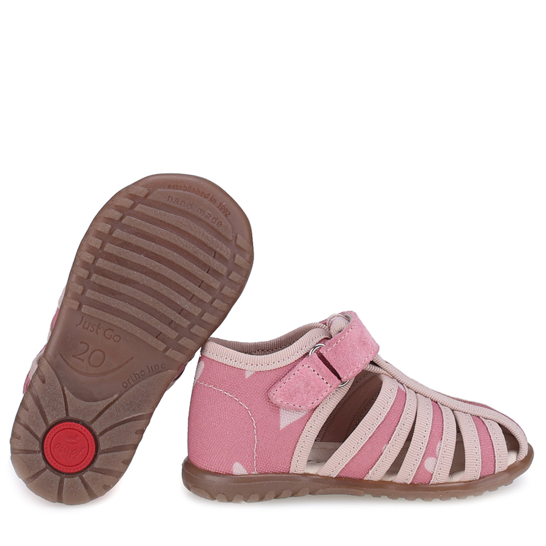 Różowy kolor w połączeniu z delikatnymi serduszkami sprawia, że kapcie są wyjątkowo dziewczęce i urocze. Ręczne wykonanie oraz użycie materiałów z recyklingu nadaje każdej parze unikalny charakter i podkreśla rzemieślniczy kunszt Emel.