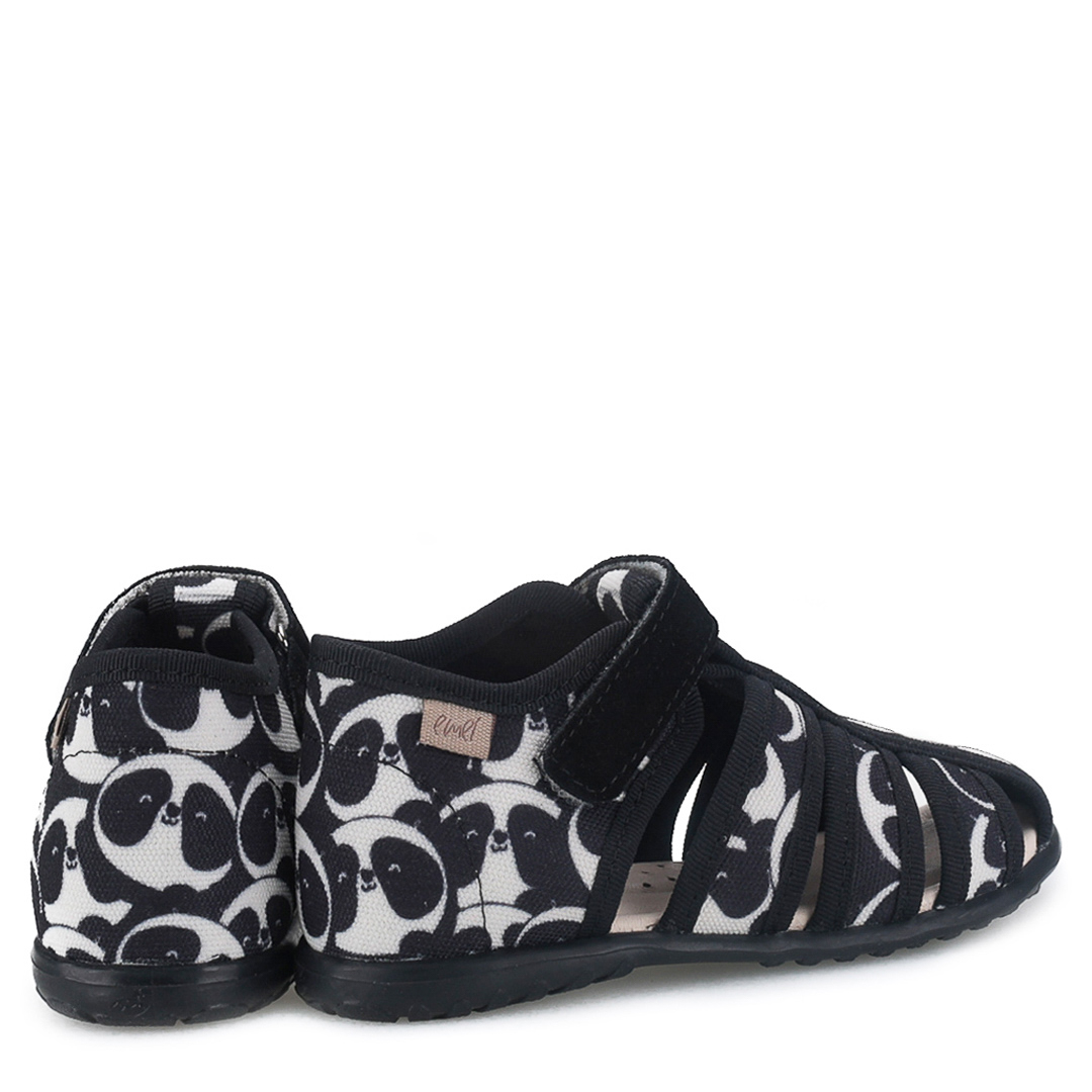 Czarno-biała kolorystyka z motywem pand nadaje kapciom uroczy charakter, który pasuje do wielu dziecięcych stylizacji. Delikatne różnice w odcieniu materiału wynikają z ręcznego wykonania oraz zastosowania tkanin pochodzących z recyklingu, co nadaje każdej parze unikalny charakter i podkreśla rzemieślniczy kunszt Emel.