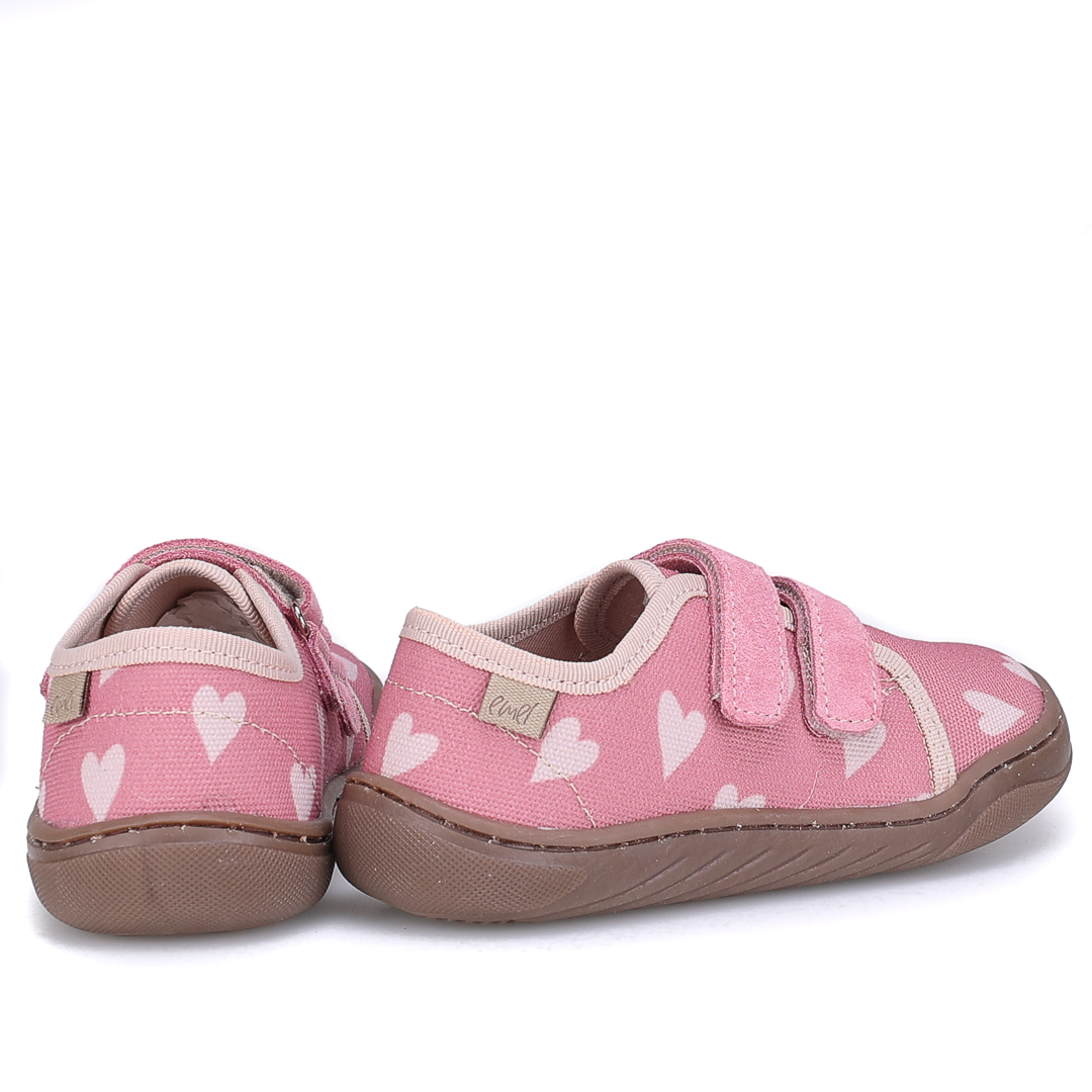 Różowe tenisówki Emel w serduszka mają anatomiczną podeszwę i krój wspierający prawidłowy rozwój stóp. Uroczy, dziewczęcy motyw serduszek nadaje im radosny i przyjazny charakter. Kapcie są miękkie, elastyczne i super lekkie, zapewniając swobodę ruchu podczas zabawy.