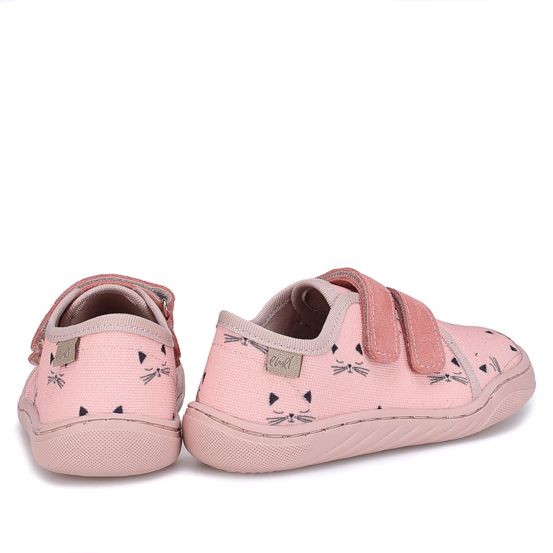 Różowe tenisówki Emel w kotki mają anatomiczną podeszwę i krój wspierający prawidłowy rozwój stóp. Uroczy motyw kotków nadaje im dziewczęcy charakter. Kapcie są miękkie, elastyczne i super lekkie, zapewniając swobodę ruchu podczas zabawy.
