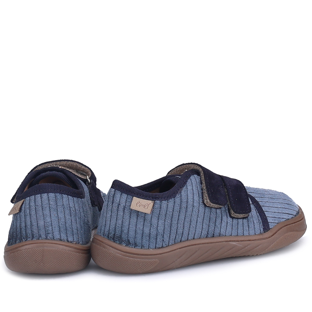 Niebieskie sztruksowe tenisówki Emel mają anatomiczną podeszwę i krój wspierający prawidłowy rozwój stóp. Miękka faktura sztruksu w głębokim niebieskim odcieniu nadaje im klasyczny i uniwersalny wygląd. Kapcie są elastyczne, mięciutkie i super lekkie, zapewniając swobodę ruchu podczas zabawy.