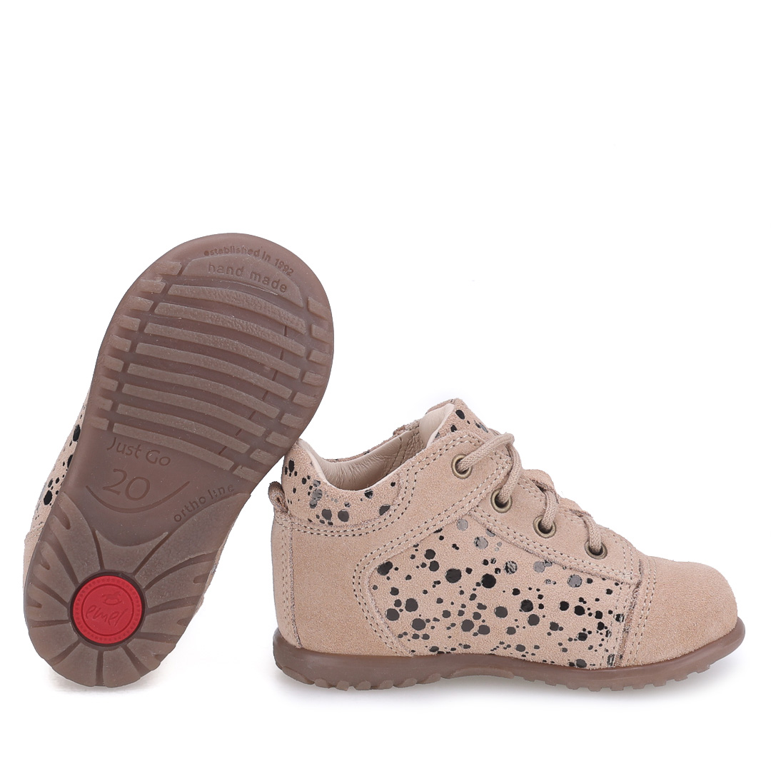 Wyrób należy stosować zgodnie z jego przewidzianym zastosowaniem. Przed pierwszym użyciem upewnij się, że buty są odpowiednie dla rozmiaru stóp dziecka. Zaleca się mierzenie stóp dziecka regularnie, ponieważ rosną one bardzo szybko. Wierzchy i środek naszego obuwia wykonane są ze skór naturalnych. Obuwie może nie zachowywać identycznego koloru oraz struktury na całej powierzchni w przypadku użycia skór naturalnych. Różnice te wynikają z niejednorodności skóry i są jej zaletą. W przypadku stwierdzenia wad wrodzonych lub nabytych kończyn dolnych u dziecka, należy zasięgnąć porady ortopedy, fizjoterapeuty lub pediatry. Obuwie należy przechowywać w suchym, przewiewnym pomieszczeniu w temperaturze do 30℃, w bezpiecznej odległości od źródła ciepła oraz promieniowania słonecznego. Obuwie nie nadaje się do użytku w trudnych i ekstremalnych warunkach atmosferycznych. Nie można prać obuwia. Produkt nie jest zabawką – przechowuj poza zasięgiem małych dzieci, gdy nie jest używany. Nieodpowiednie użytkowanie lub brak konserwacji może prowadzić do uszkodzenia butów lub urazów.