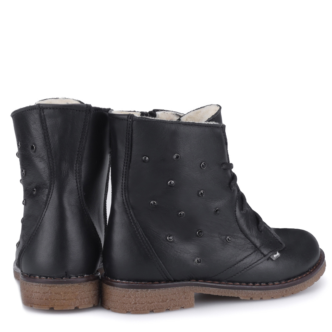 Natori – czarne klasyczne trzewiki dziecięce ze skóry naturalnej z kryształkami