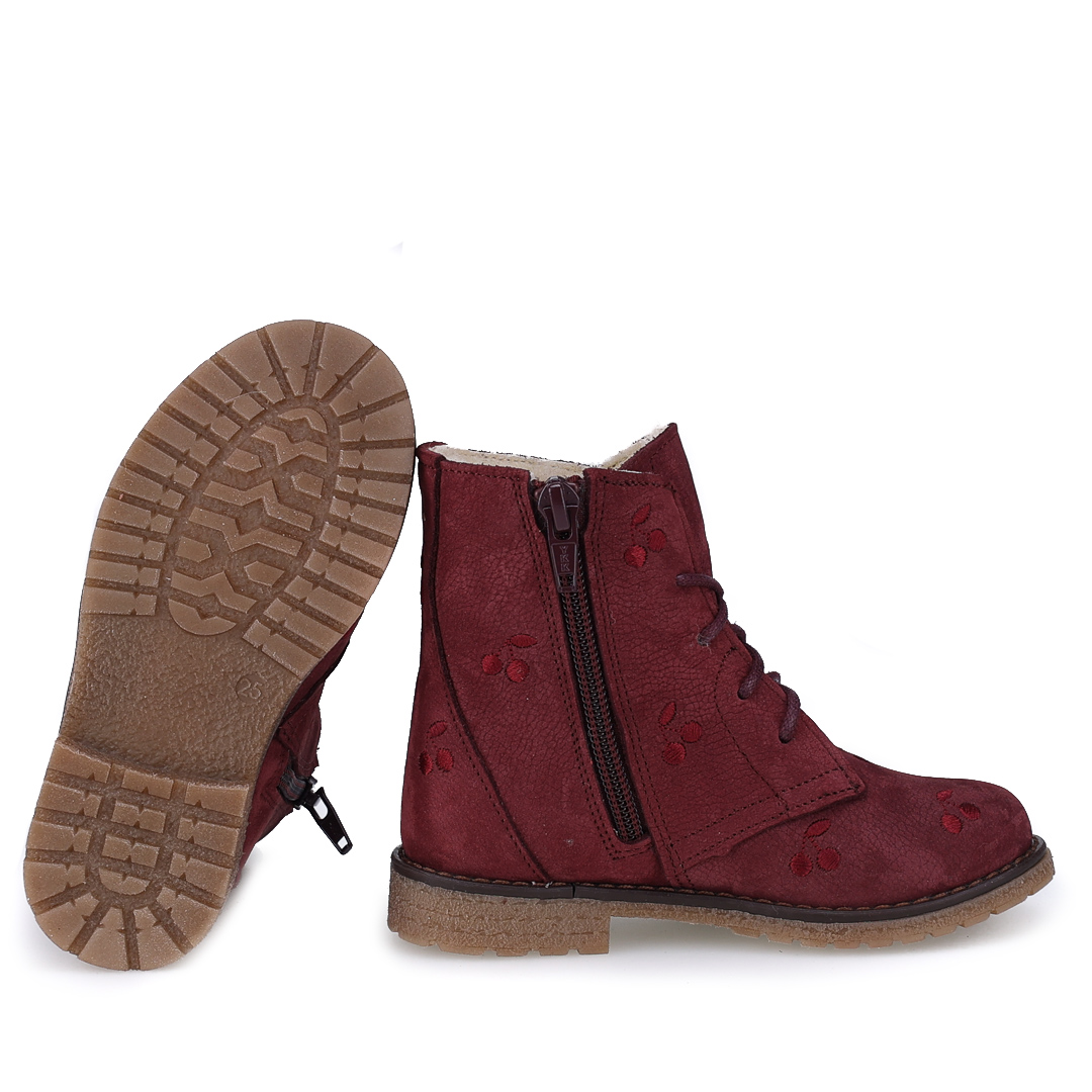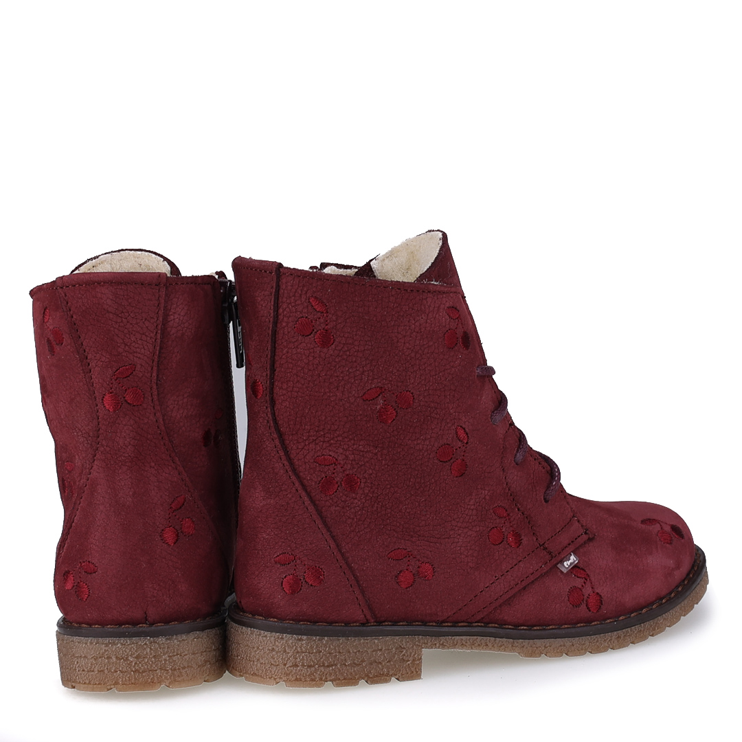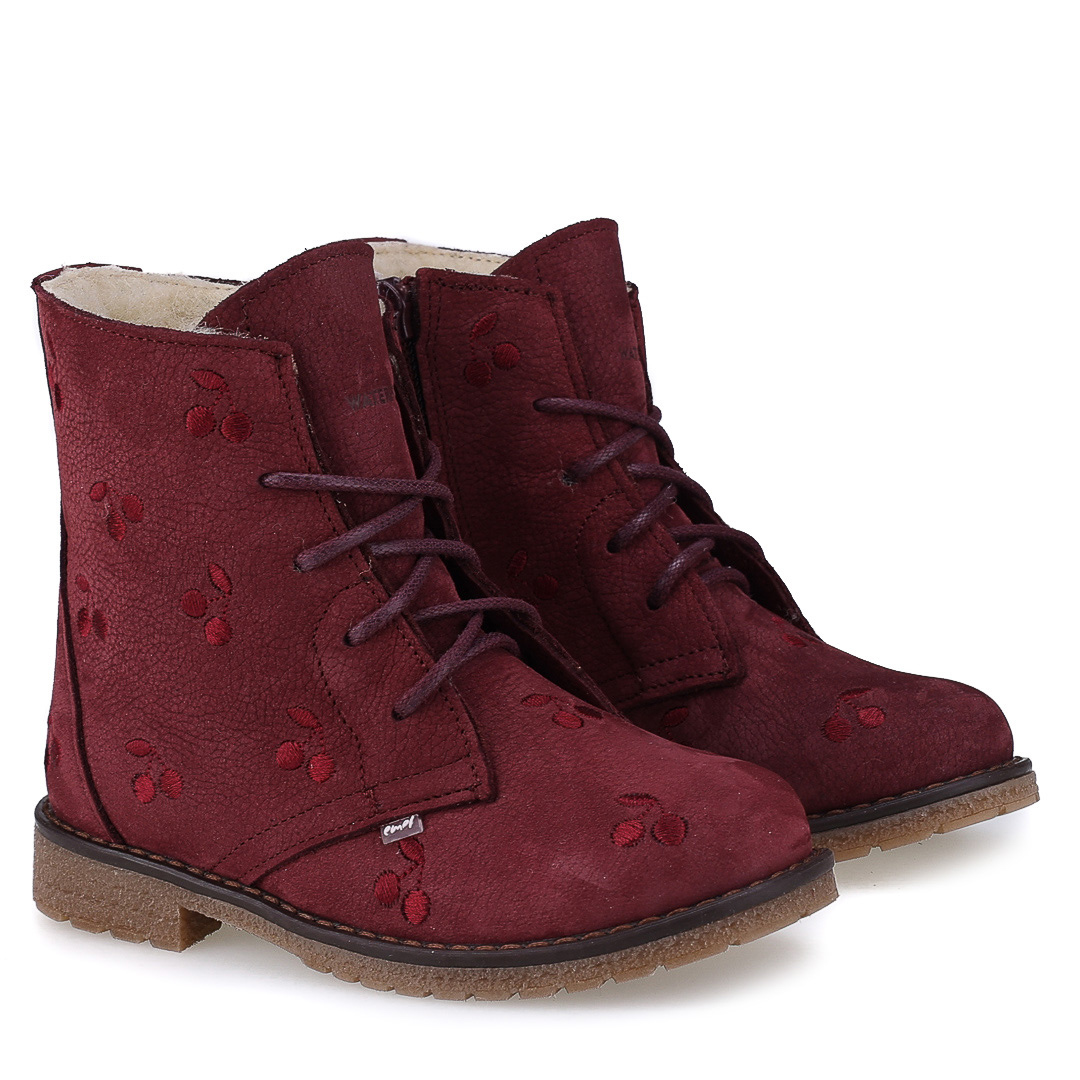 Natori – bordowe trzewiki dziecięce ze skóry naturalnej z wisienkami