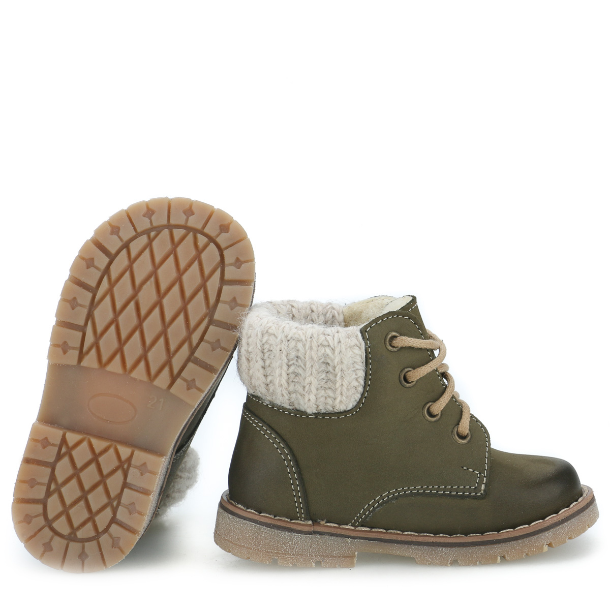 Zielone trzewiki dziecięce wykonane z naturalnego nubuku wyróżniają się głębokim, intensywnym kolorem i subtelnym matowym wykończeniem. Miękka podszewka zapewnia ciepło i komfort podczas zimowych spacerów, a klasyczny fason pasuje zarówno do codziennych, jak i bardziej eleganckich stylizacji.