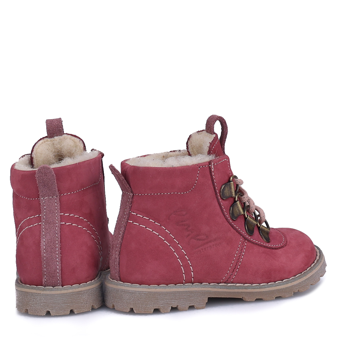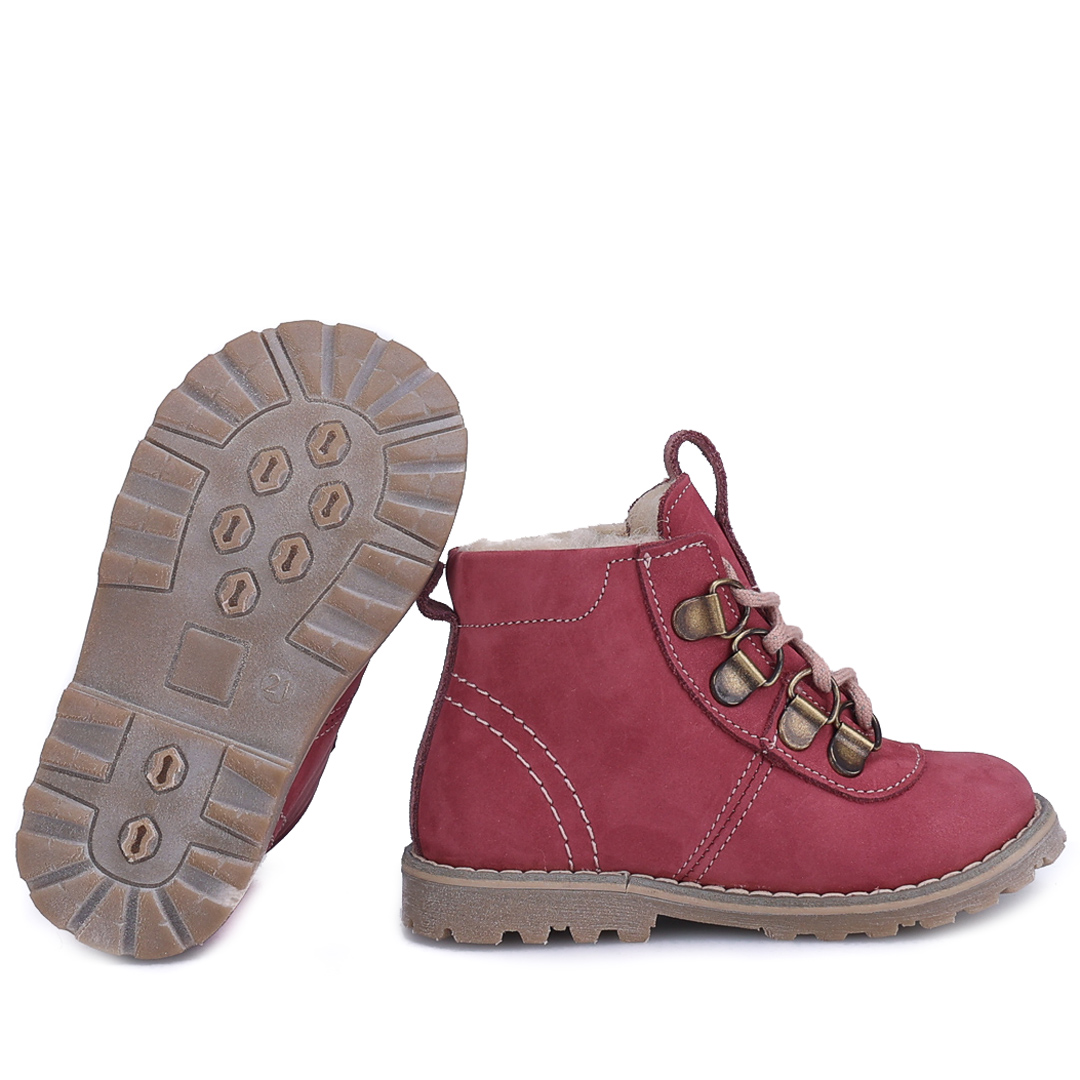 Naturalne materiały – cholewka ze skóry naturalnej nubukowej wolnej od szkodliwych substancji oraz wełniana podszewka dbają o komfort i bezpieczeństwo dziecięcych stóp.