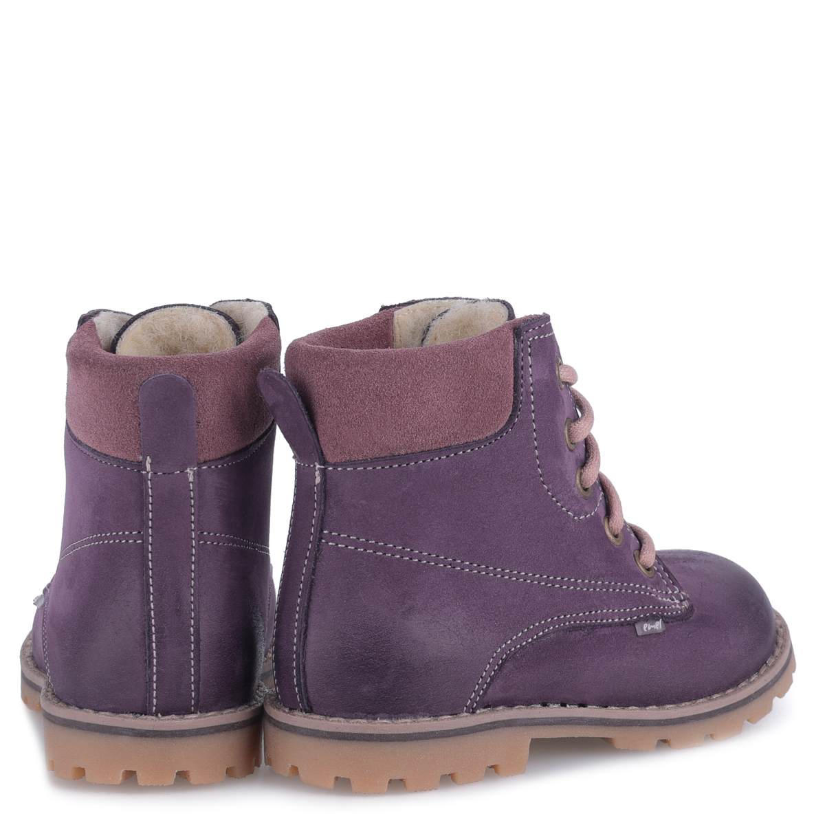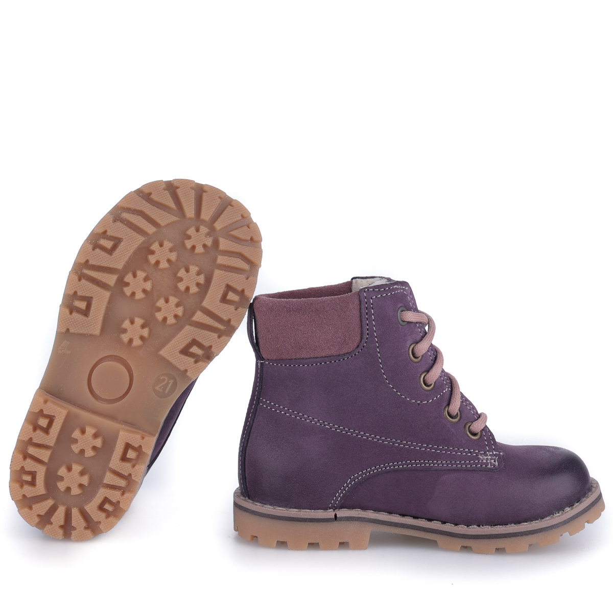Model Geneva – fioletowe traperki dziecięce ze skóry naturalnej