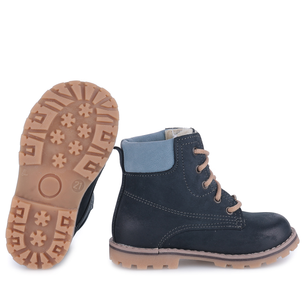 Model Geneva – granatowe traperki dziecięce ze skóry naturalnej
