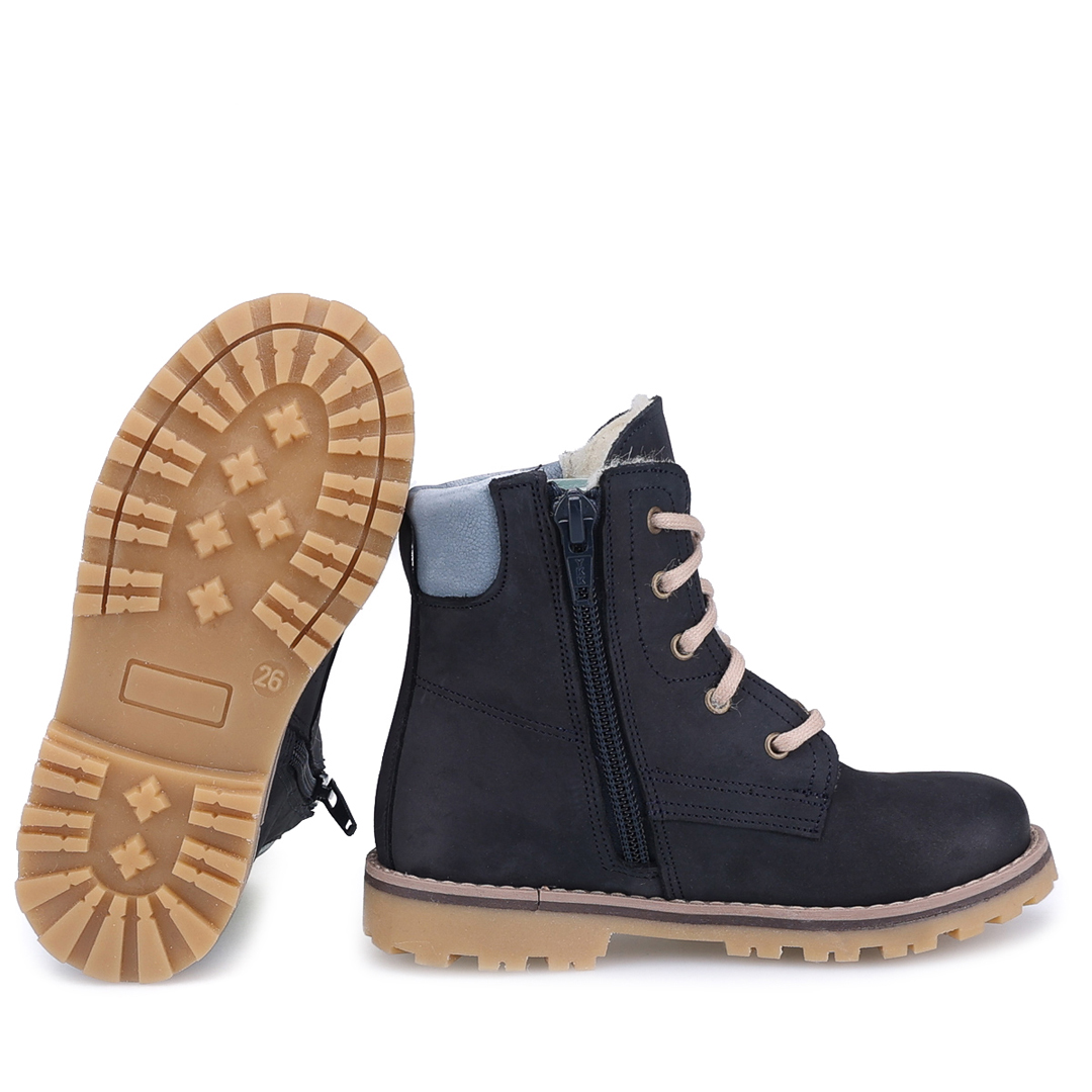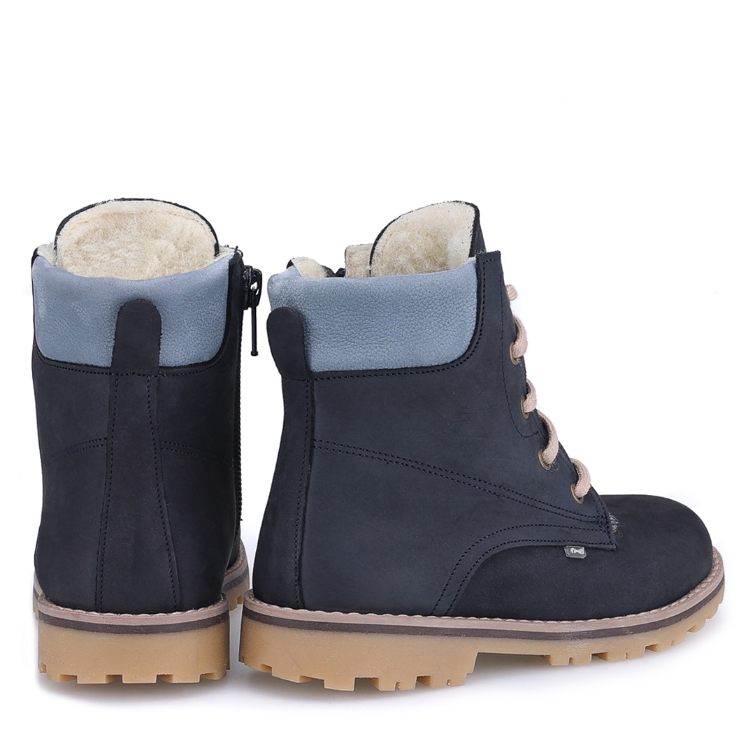 Model Geneva – granatowe traperki dziecięce ze skóry naturalnej