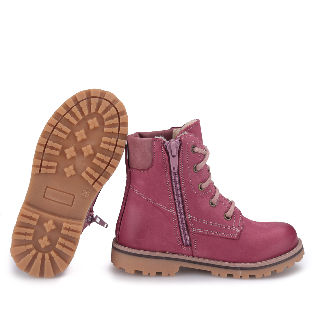 Różowa cholewka nadaje traperkom uniwersalnego, ponadczasowego charakteru. Solidny fason zapewnia wygodę i stabilne wsparcie dla rosnących stóp.