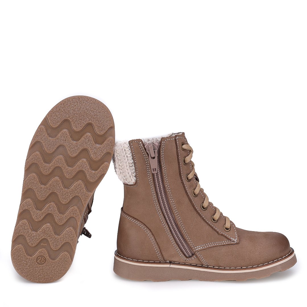 Sznurówki zapewniają najlepszą regulację i dopasowanie do dziecięcej stopy. Miękka i naturalna wełniana podszewka reguluje temperaturę i utrzymuje stopy w cieple.