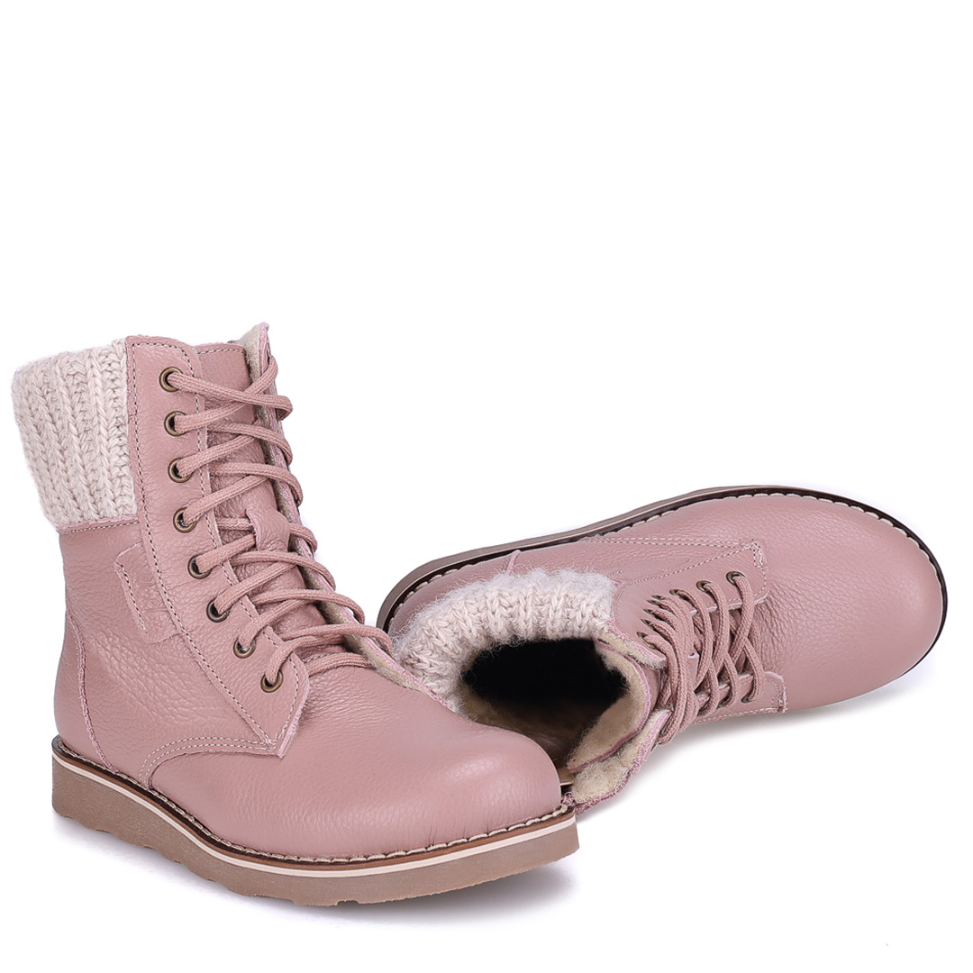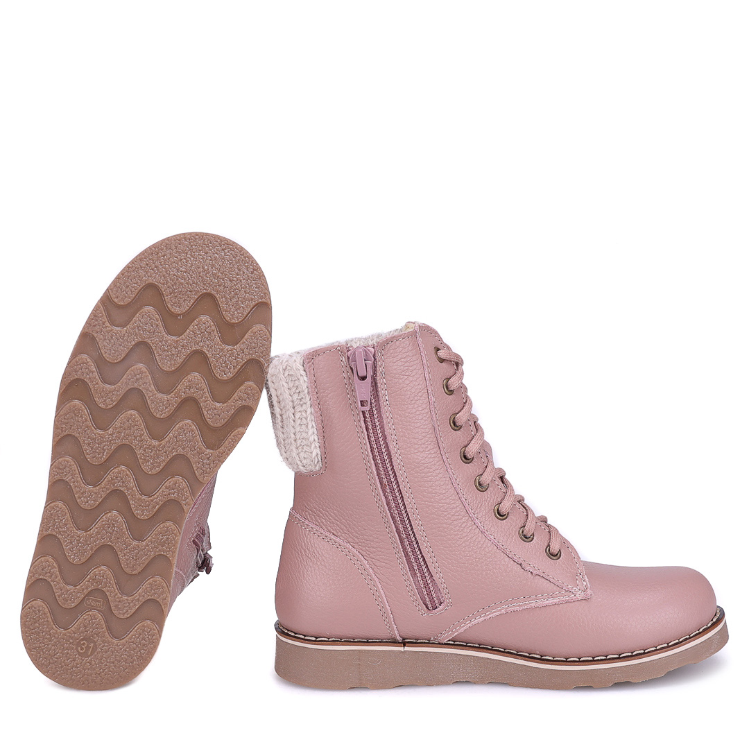 Oslo membrana różowe traperki dziecięce ze skóry naturalnej