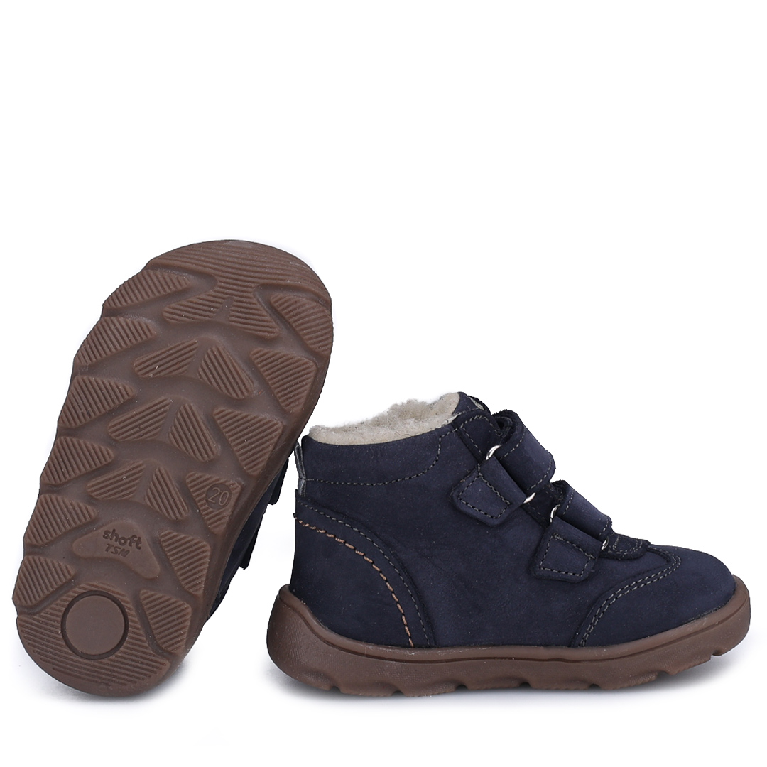 Granatowe trzewiki dziecięce Kodiak Barefoot łączą sportowy charakter z klasycznym wykończeniem. Kontrast kolorów podkreśla nowoczesny design, a odblaskowe elementy zwiększają bezpieczeństwo dziecka podczas zimowych spacerów.