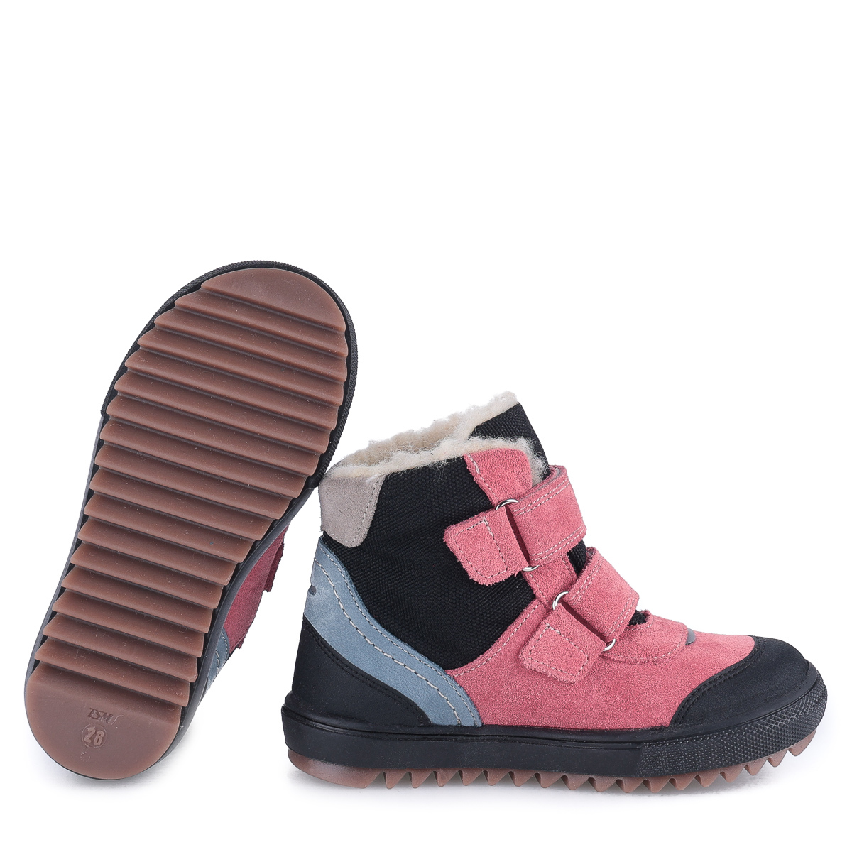 Alaska – różowe dziewczęce trzewiki ze skóry naturalnej z błękitnymi akcentami
