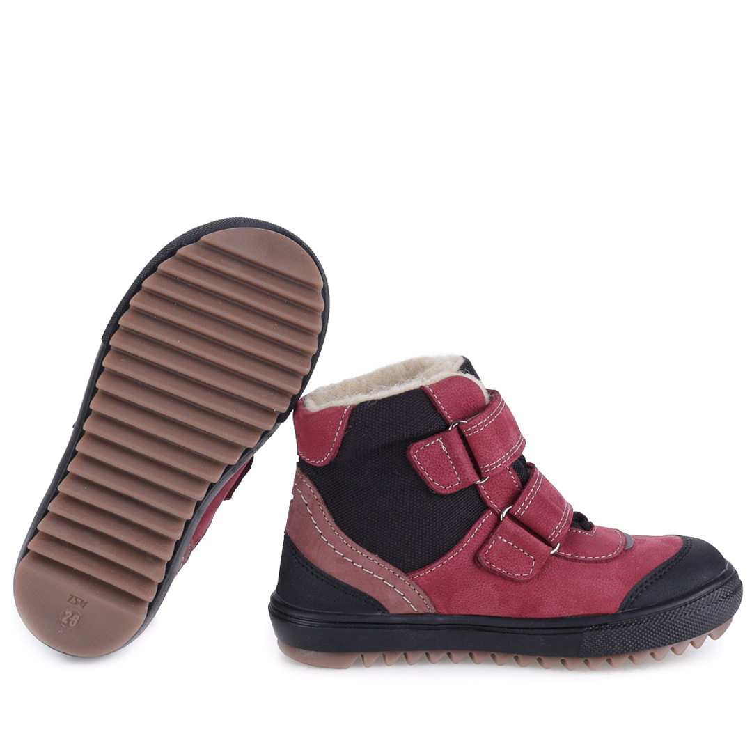 Alaska – malinowe nubukowe trzewiki dziecięce ze skóry naturalnej
