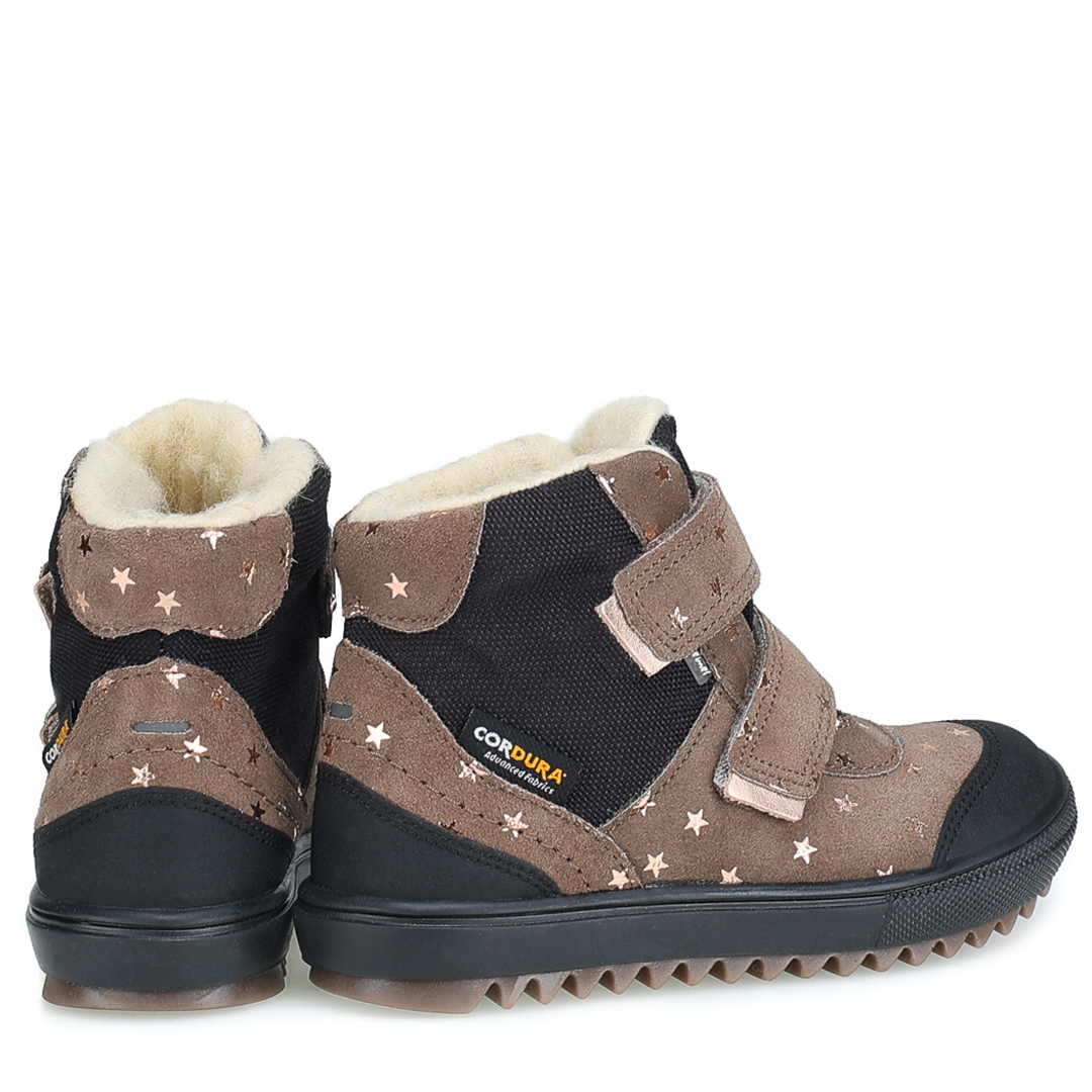 Ręcznie produkowane w manufakturze Emel, te trzewiki łączą wysokiej jakości skóry naturalne z Cordurą® – wodoodpornym i wyjątkowo odpornym na przetarcia materiałem. Model został stworzony z myślą o codziennych zimowych aktywnościach dzieci, zapewniając ciepło, komfort i funkcjonalność.