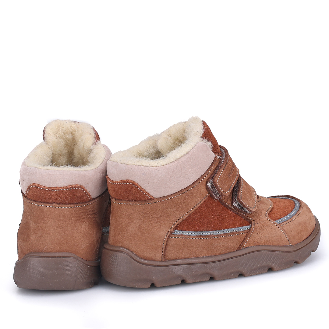 Atlas Barefoot – Brązowe traperki dziecięce z odblaskami