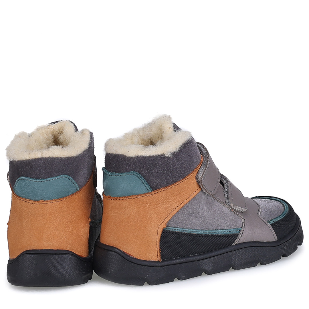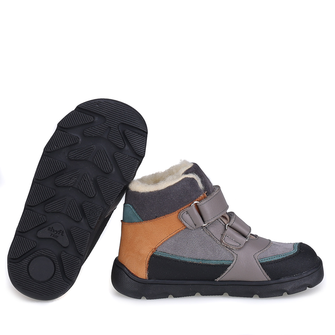 Atlas Barefoot – Szare trzewiki dziecięce z czarnymi i brązowymi akcentami