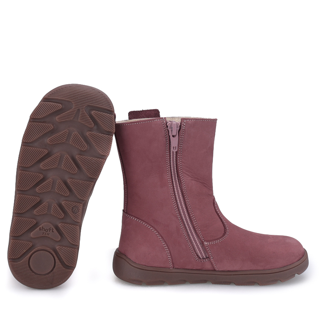 Różowe kozaki dziecięce Barefoot wykonane z naturalnej skóry łączą klasyczną elegancję z ideą chodzenia boso. Prosty, ponadczasowy fason i praktyczny suwak ułatwiają zakładanie oraz dopasowanie do stopy. Miękka podszewka otula stopę ciepłem, zapewniając komfort i swobodę ruchu podczas chłodniejszych dni.