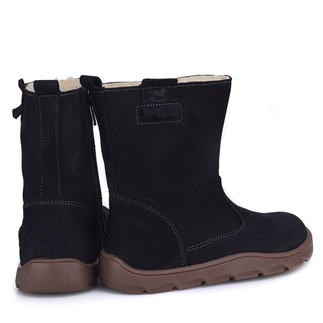 Amur Barefoot czarne kozaki dziecięce ze skóry naturalnej