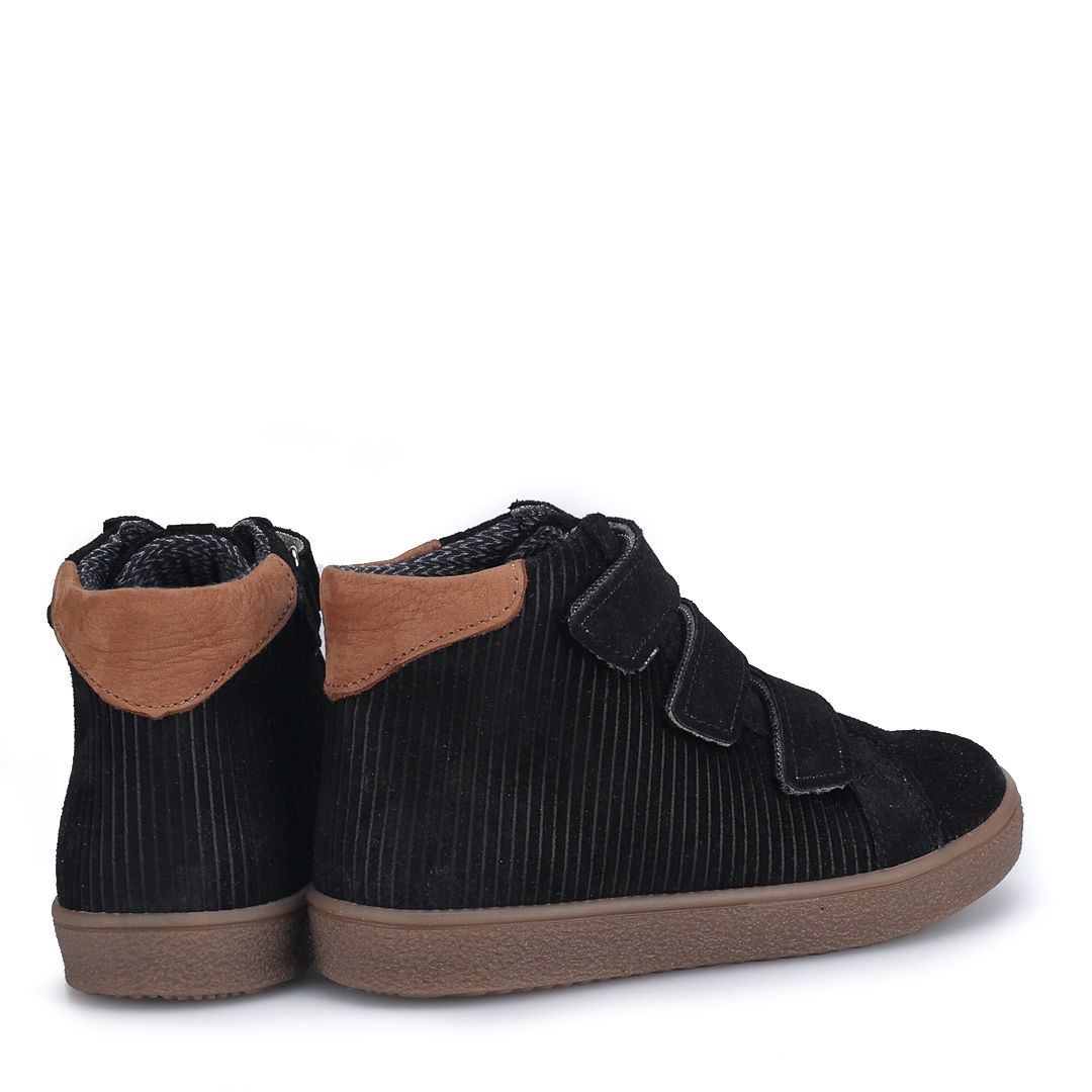 Czarne trampki Chester wykonane ze skóry welurowej o sztruksowej fakturze to połączenie klasyki i nowoczesnej formy. Subtelna tekstura materiału nadaje im wyjątkowego charakteru, a uniwersalny kolor sprawia, że świetnie komponują się z codziennymi stylizacjami. Model idealny na jesienne dni.
