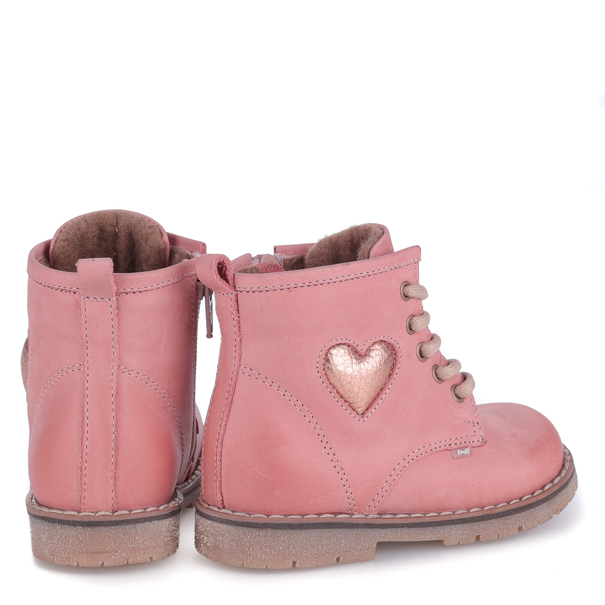 Bergen – różowe trzewiki dziecięce z błyszczącym serduszkiem