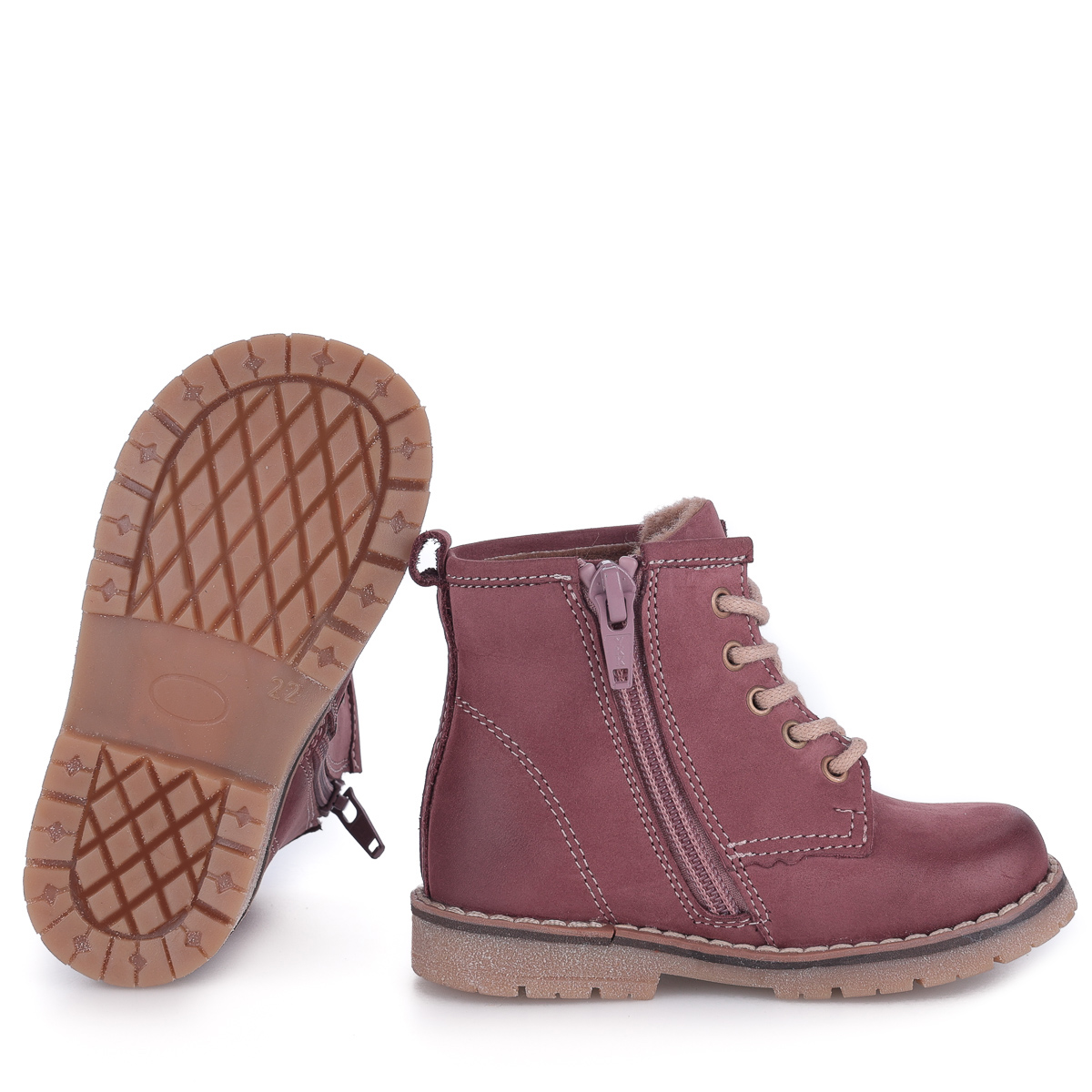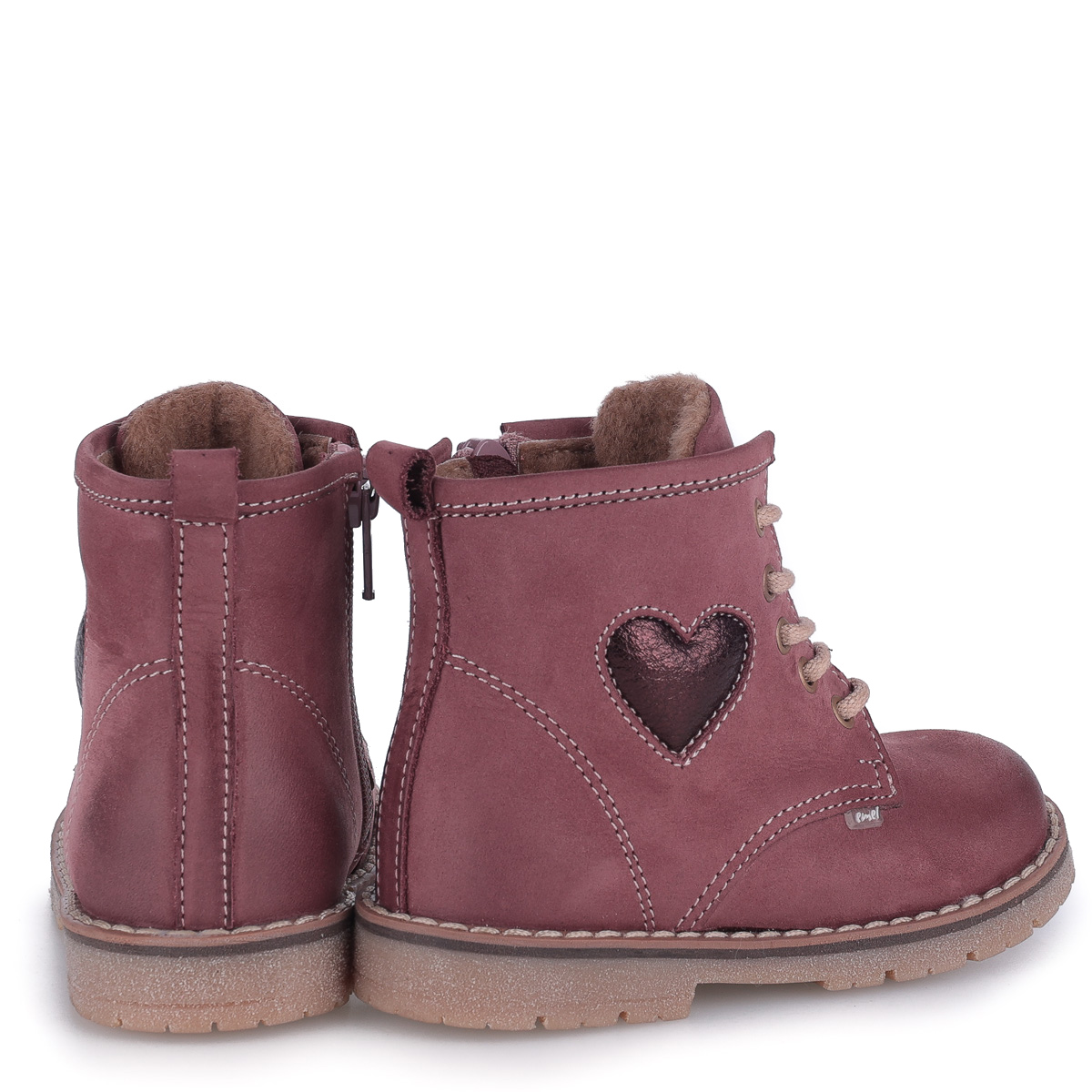 Bergen – fioletowe trzewiki dziecięce z nubuku z błyszczącym serduszkiem