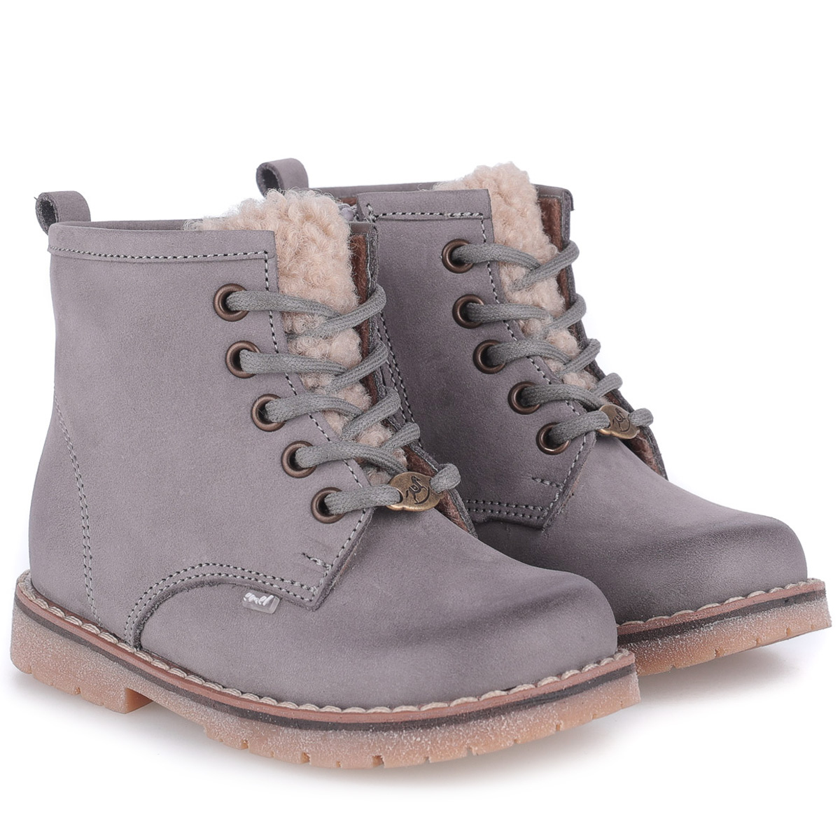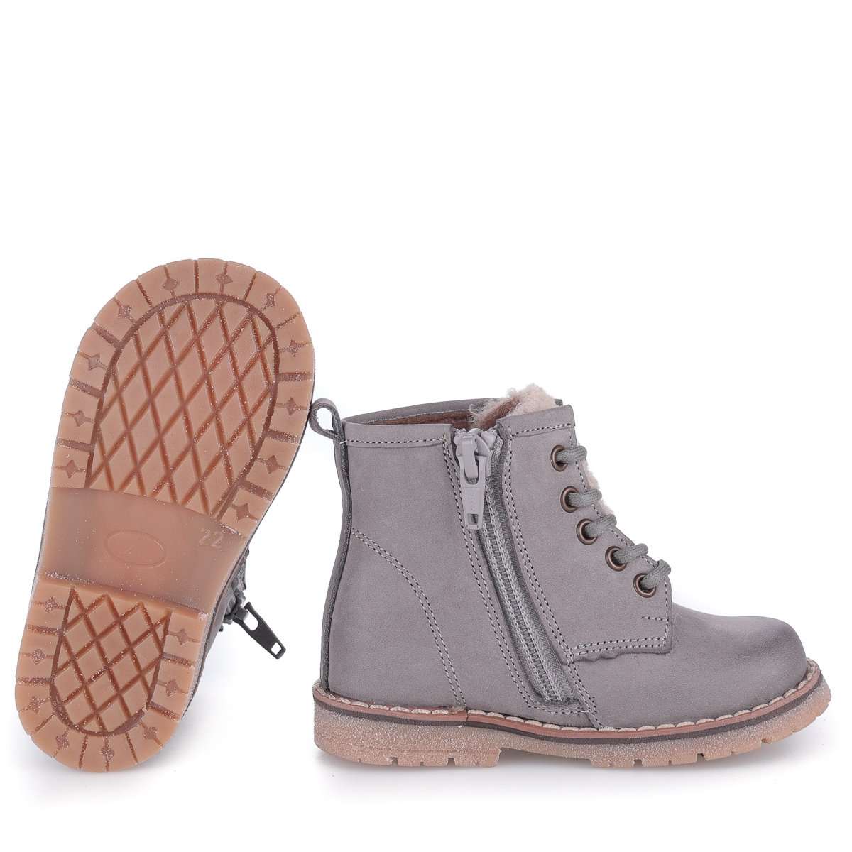 Bergen – szare trzewiki dziecięce z naturalnej skóry nubukowej
