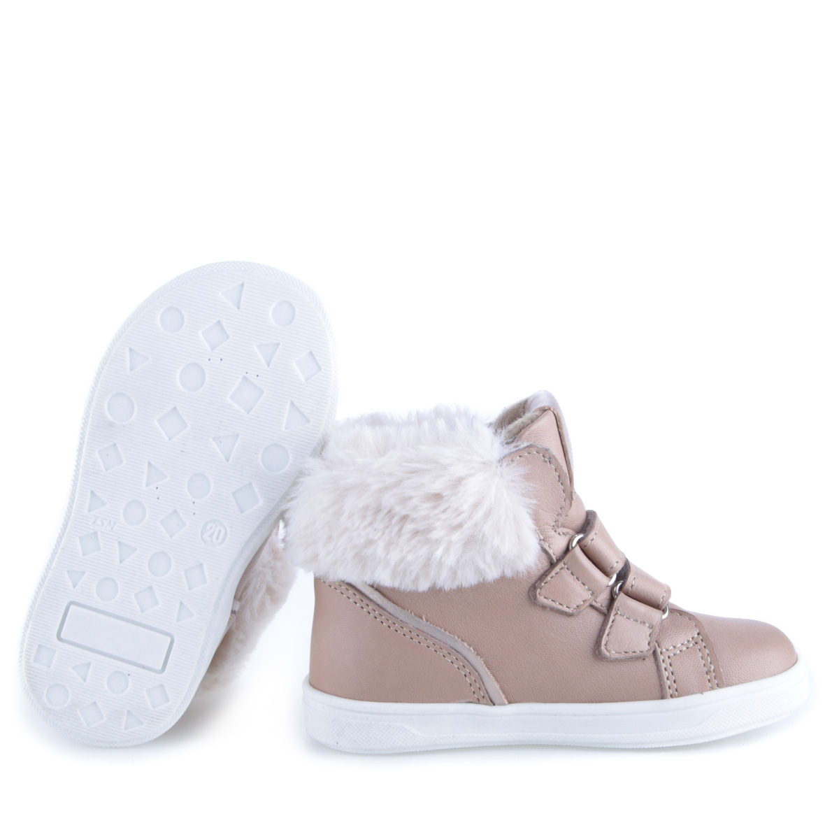 Hudson – Beżowe trampki dziecięce z futerkiem