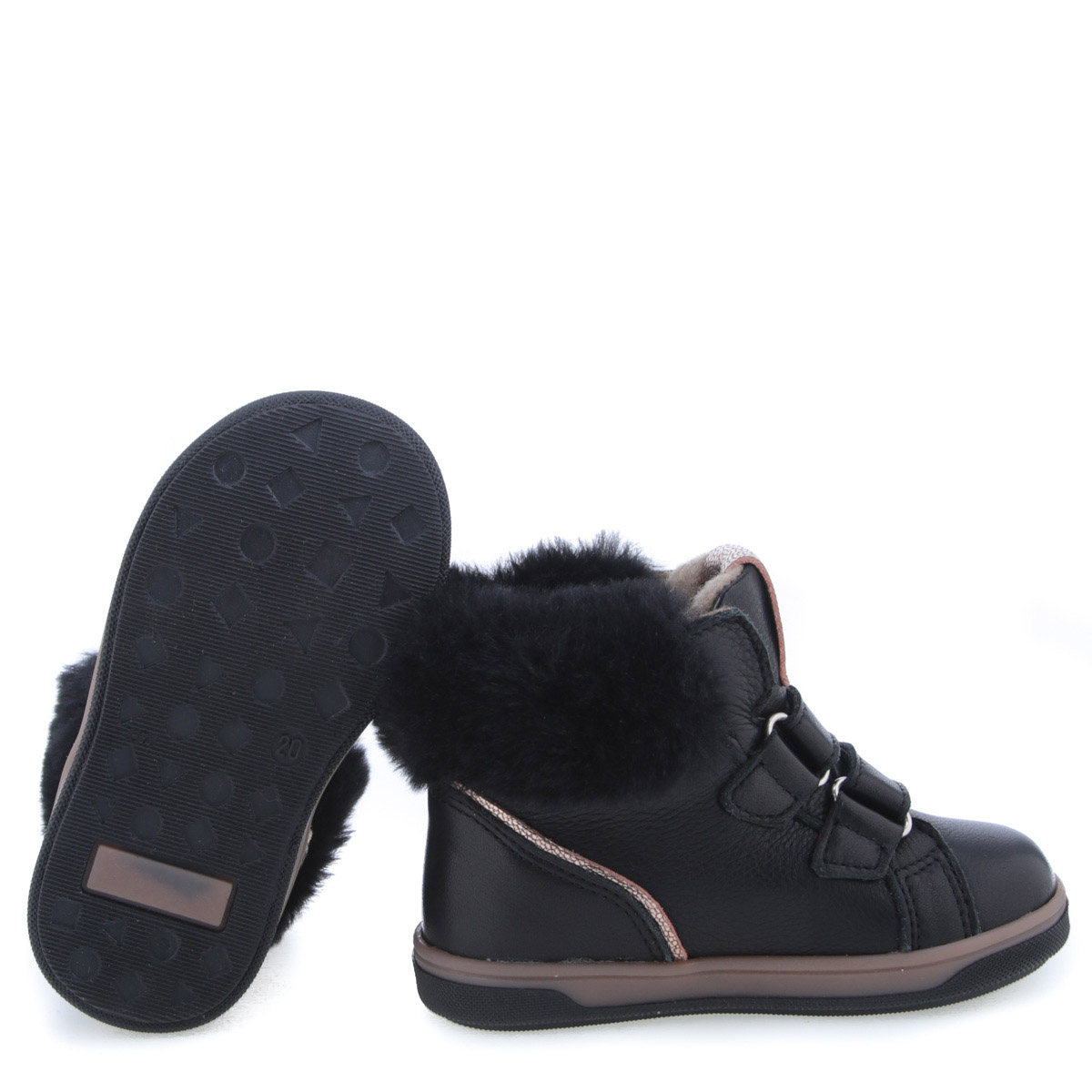 Dziecięce trampki Hudson wykonane z czarnej skóry licowej z miękkim futerkiem łączą klasyczny wygląd z lekką, szeroką konstrukcją, zapewniając wygodę i swobodę ruchu dla rosnących stóp.