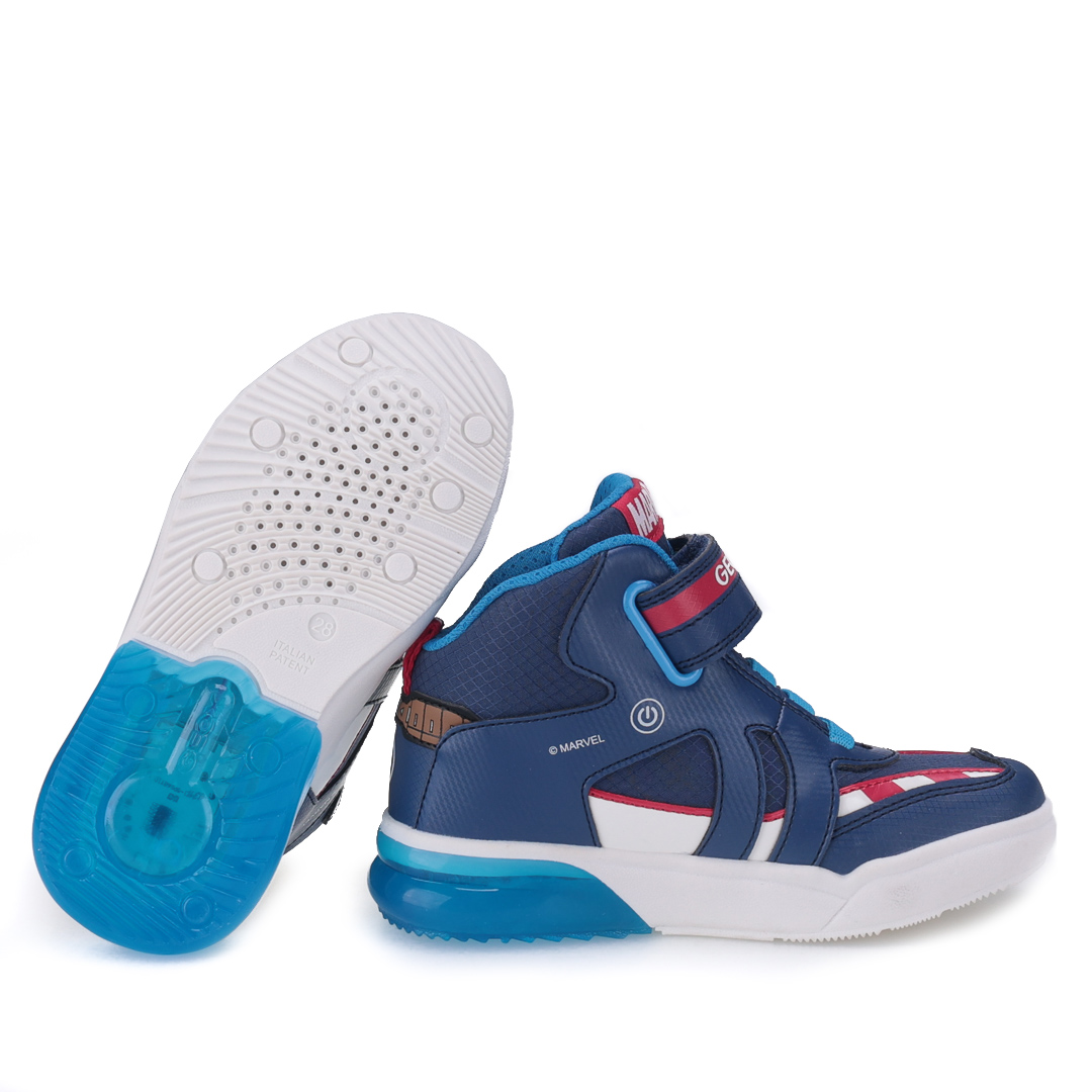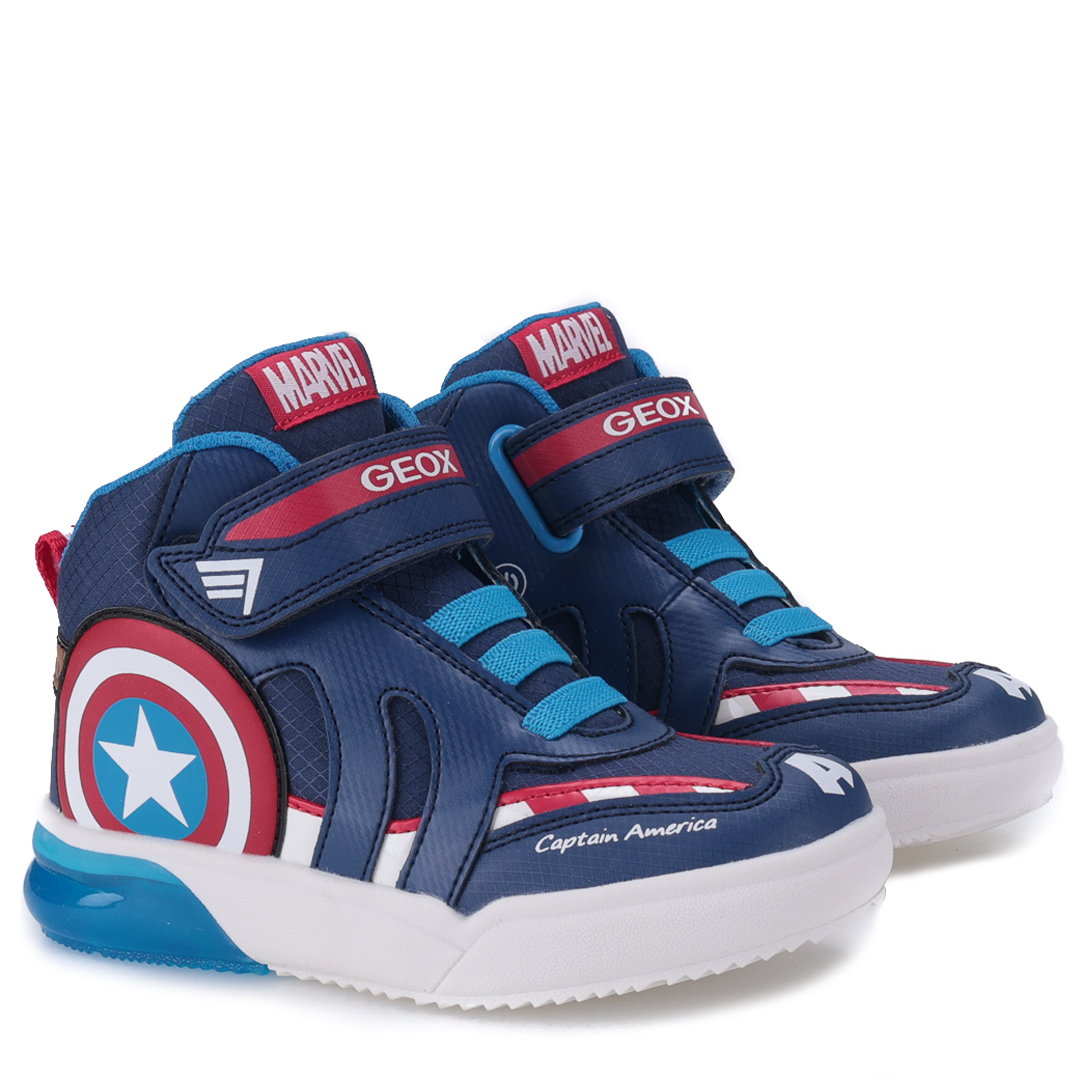 Niskie buty sportowe Geox powstały we współpracy z Marvel, łącząc wygodę i funkcjonalność z ulubionym bohaterem – Kapitan Ameryka! Model w odcieniach granatu i niebieskiego ozdobiony grafikami kultowej postaci to prawdziwa gratka dla małych fanów przygód.
