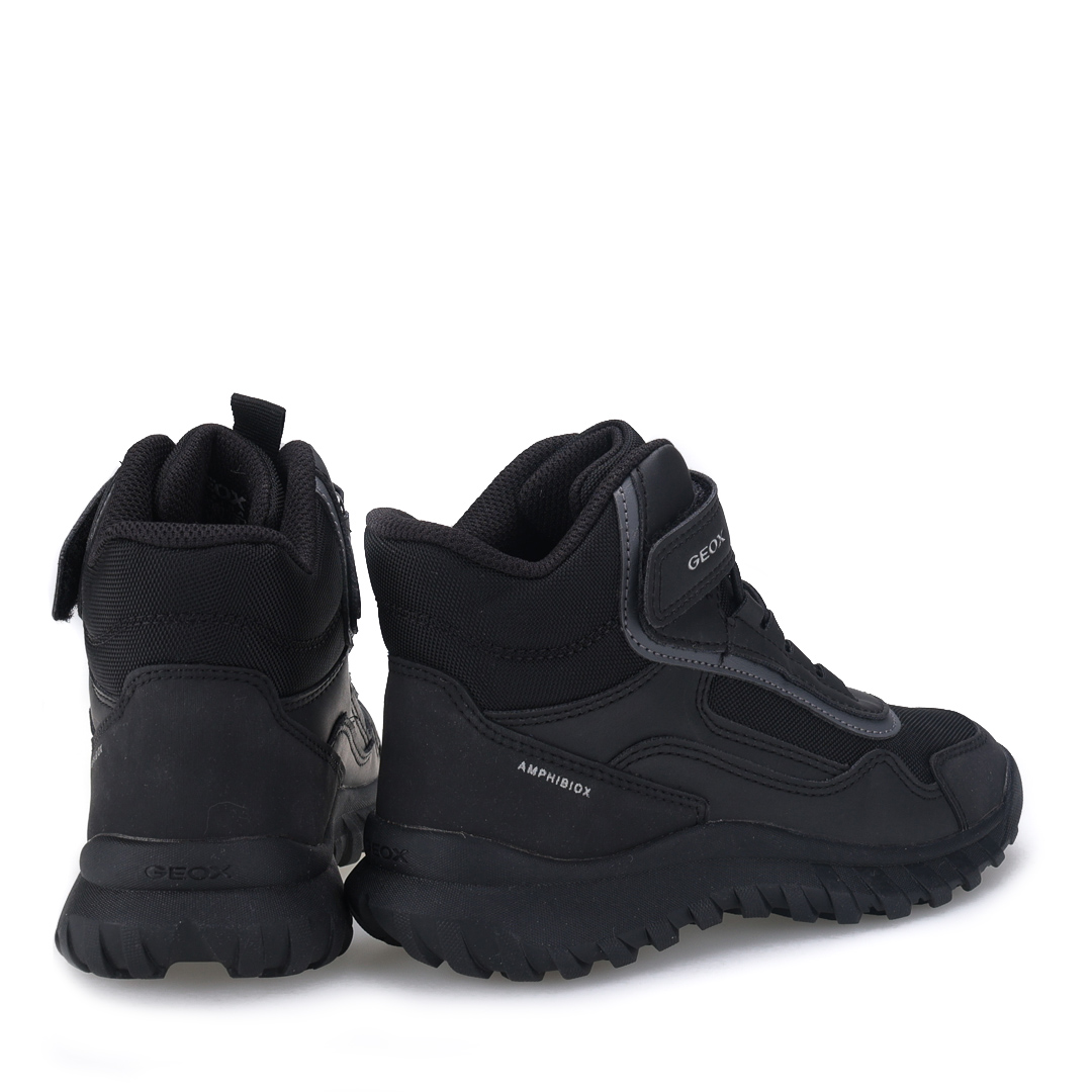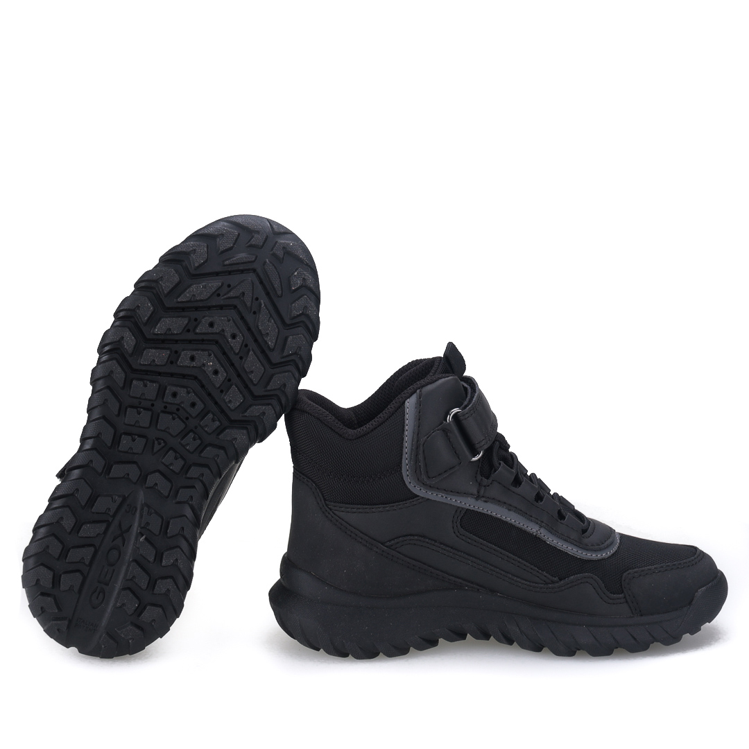 Zimowe buty dziecięce z kolekcji Geox. Ocieplony model wykonany z połączenia skóry ekologicznej, materiału tekstylnego i materiału syntetycznego.